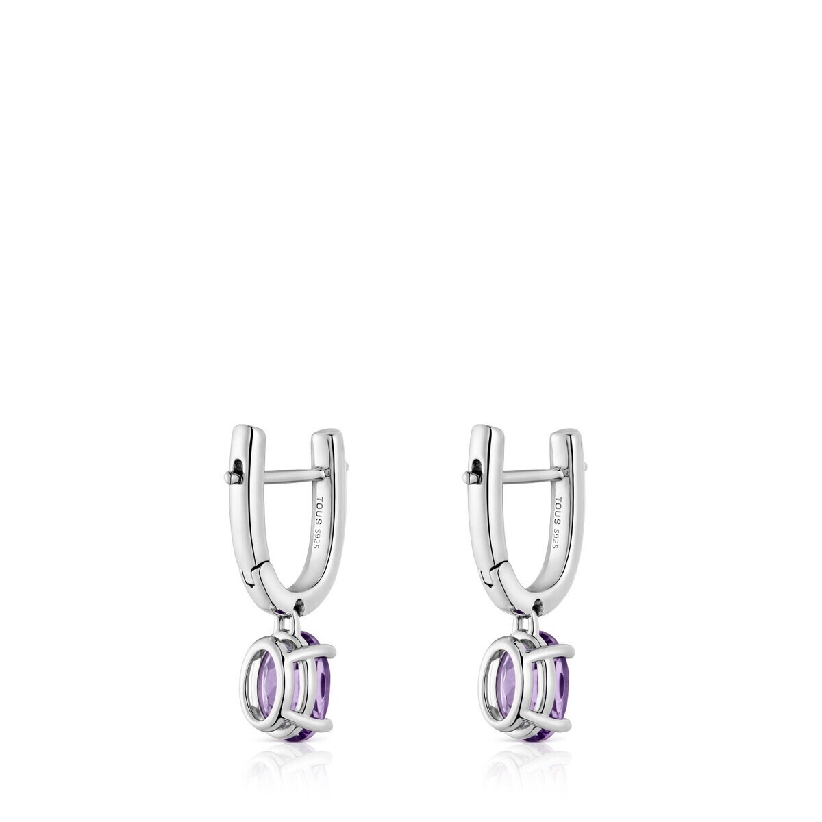 Серьги-кольца TOUS Basic Colors из стерлингового серебра с бриллиантами круглой огранки 0,028 карата и ограненным овальным аметистом.