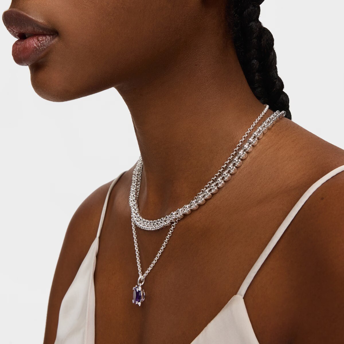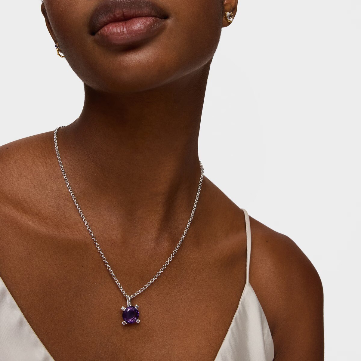 Погрузитесь в новую коллекцию Color Pills с серебряным кулоном с аметистом Color Pills. Добавьте нотку роскоши и индивидуальности в свой образ.