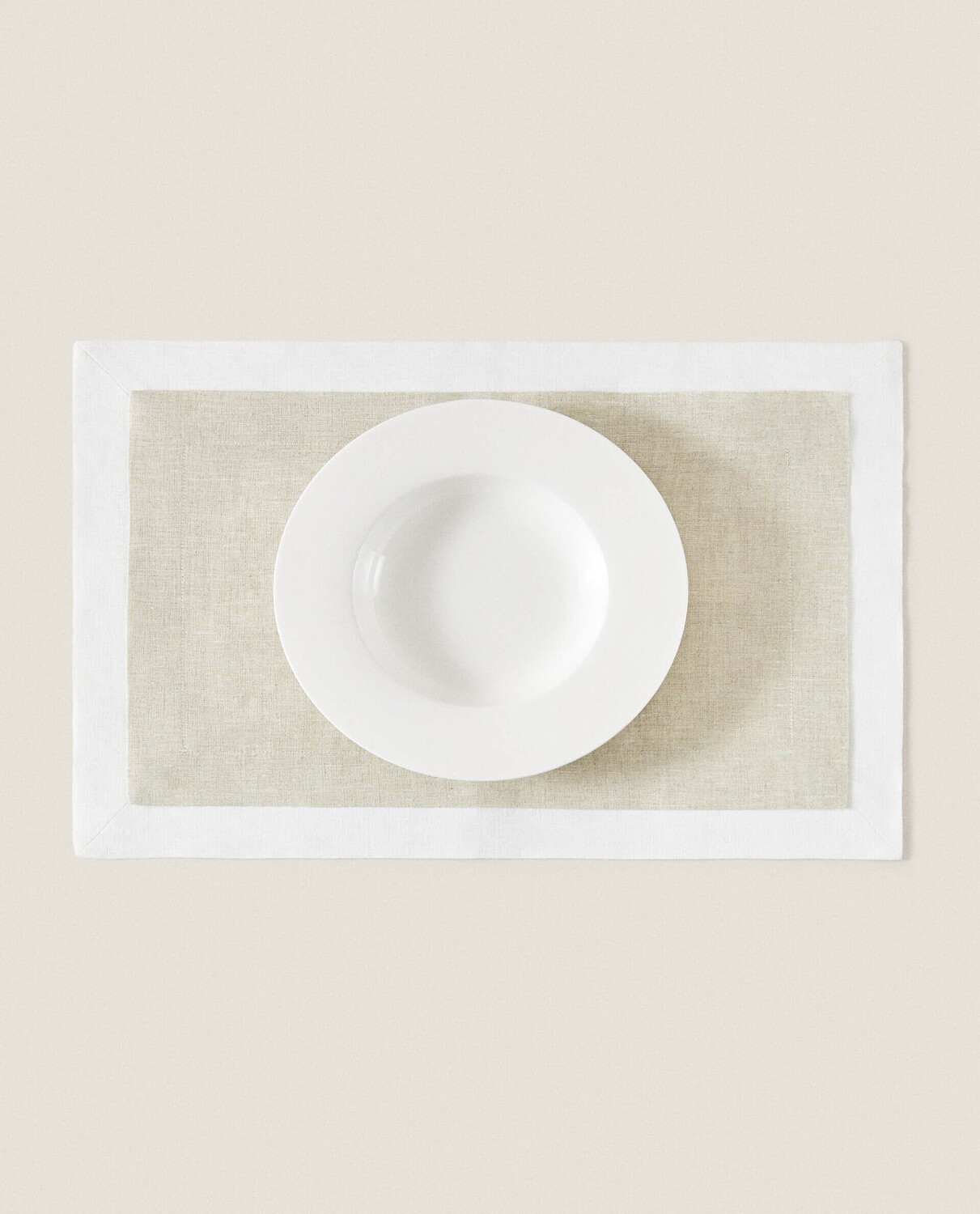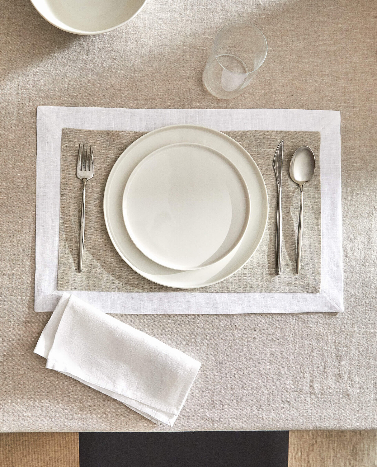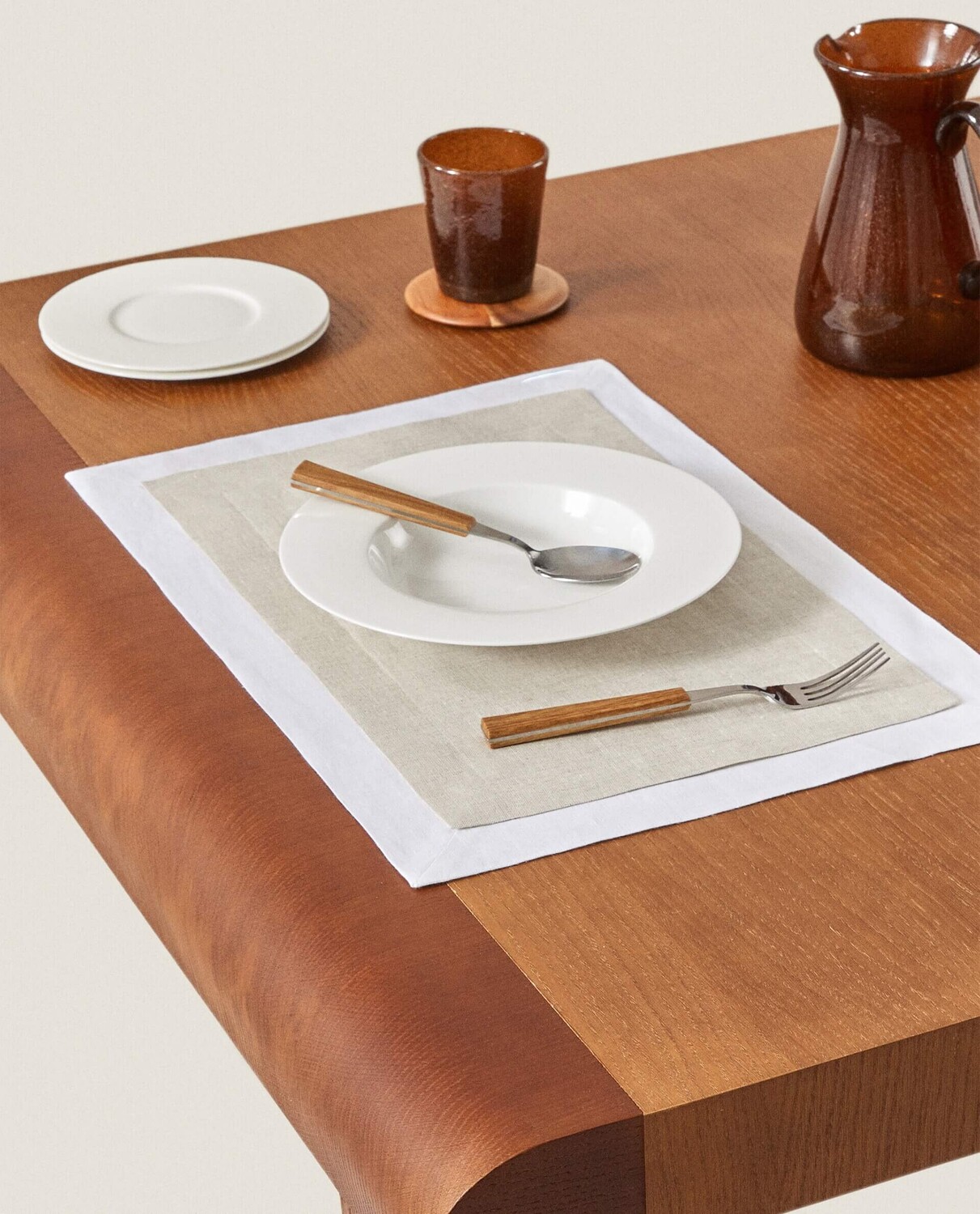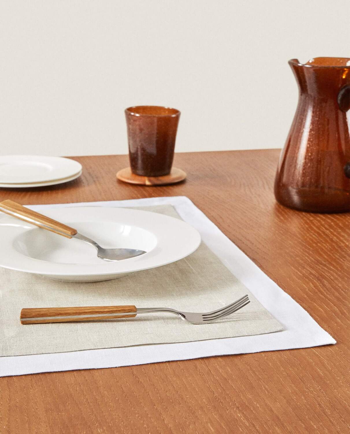 Салфетка под приборы с контрастной каймой. Изготовлена из 100% льна.