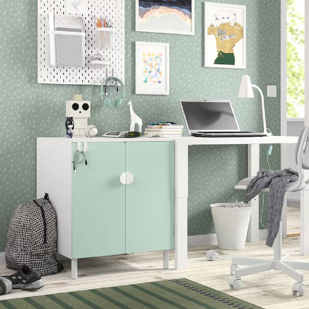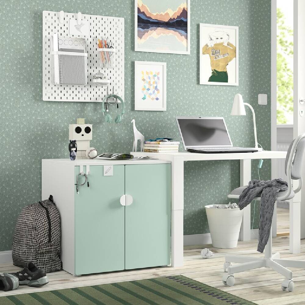 Игрушки, книги и незавершенные поделки можно убрать в шкаф подальше от глаз. Благодаря ножкам вы легко сможете пропылесосить под шкафом.