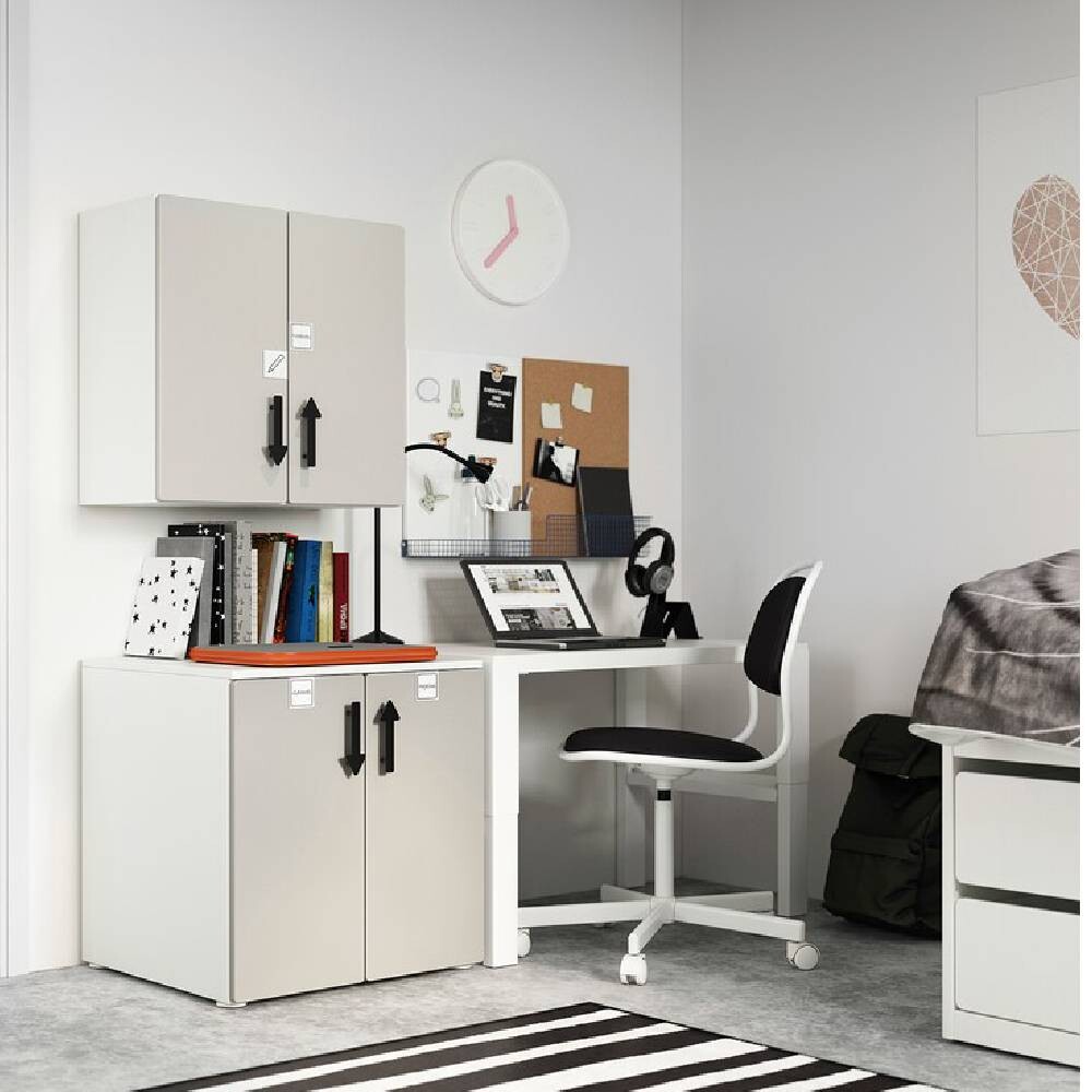 Игрушки, книги и незавершенные поделки можно убрать в шкаф подальше от глаз.