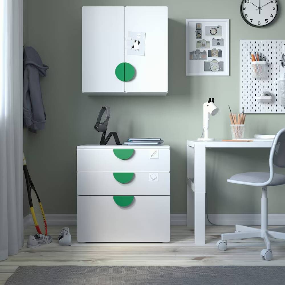 Игрушки, книги и незавершенные поделки можно убрать в шкаф подальше от глаз.