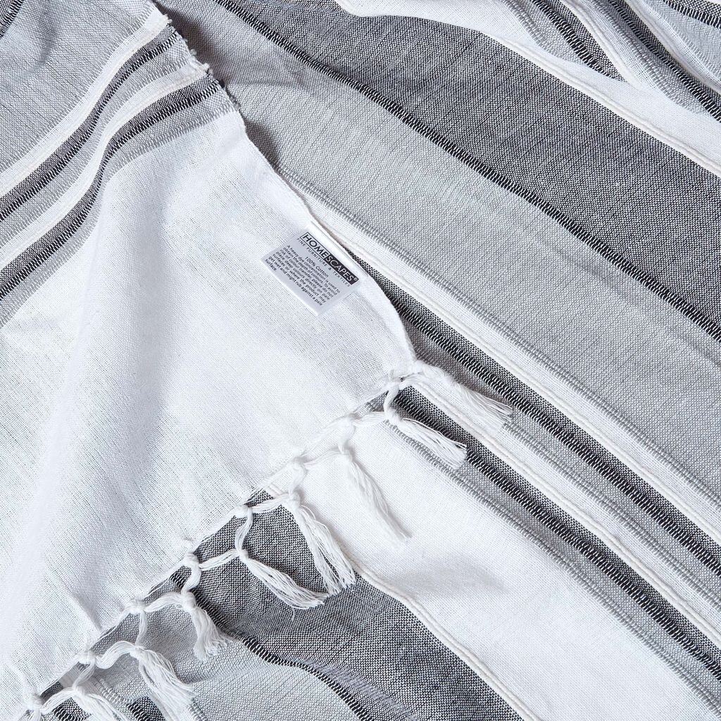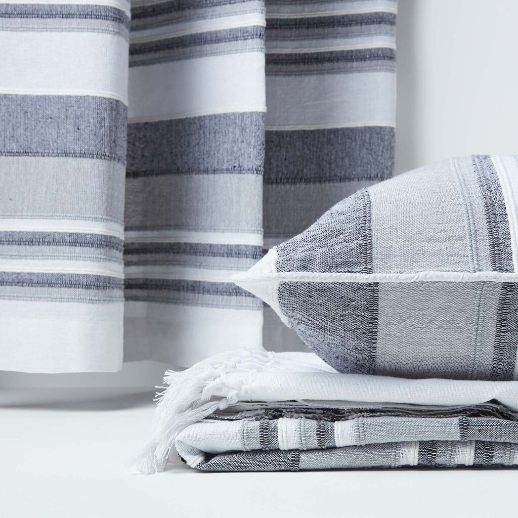 Полосатое одеяло доступно в различных цветах. Помимо классического серого цвета, он также доступен с полосками бежевого или терракотового цвета.