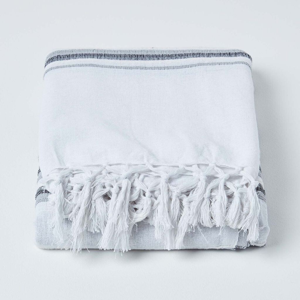 Этот легкий плед станет настоящим украшением вашего дома и может использоваться по-разному. например, как покрывало для кровати или дивана. Полосатое одеяло изготовлено из 100% хлопка.