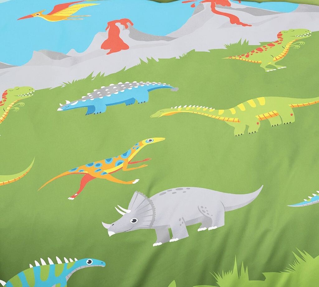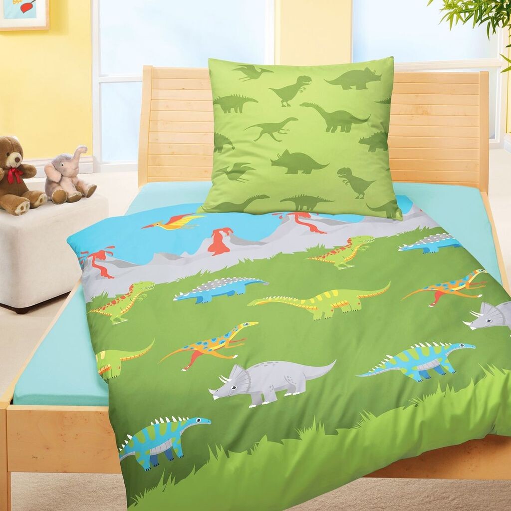 Детское постельное белье «Динозавр и вулкан» от JACK от Bierbaum ярких расцветок обязательно понравится всем маленьким поклонникам динозавров. Прохладный характер детского постельного белья подчеркивается использованием приятных для детей цветов.