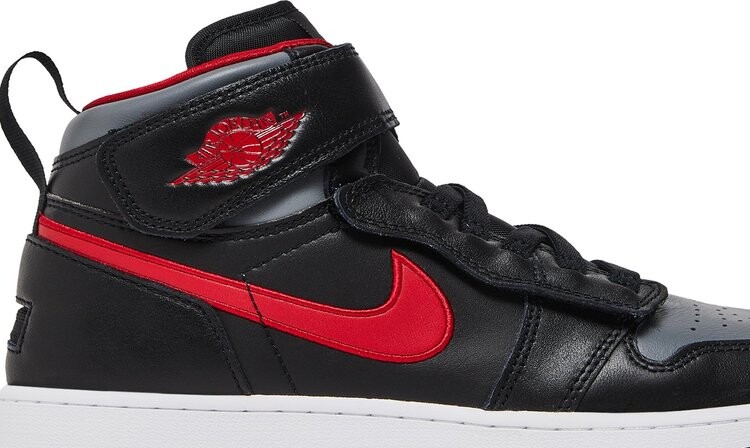 Кроссовки Air Jordan 1 High FlyEase GS Smoke Grey Gym Red, черный