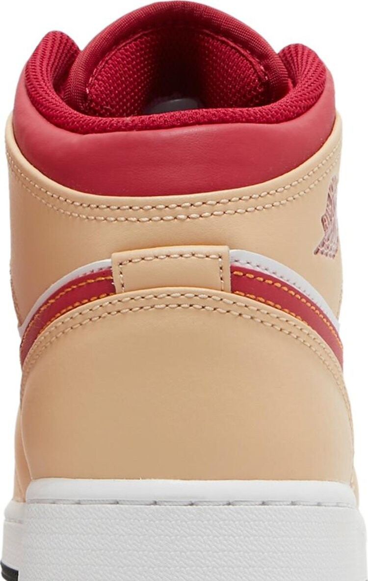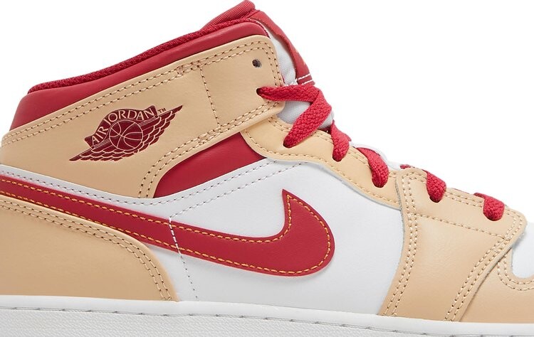 Кроссовки Air Jordan 1 Mid GS Light Curry Cardinal Red, кремовый