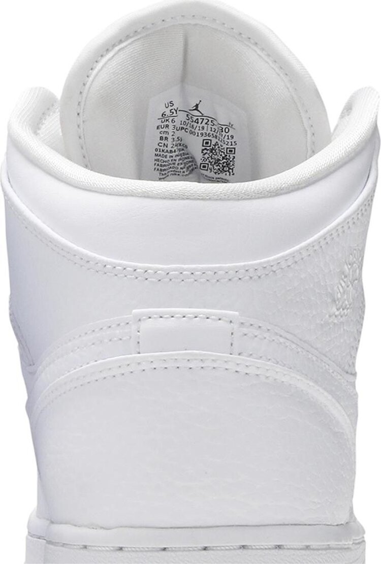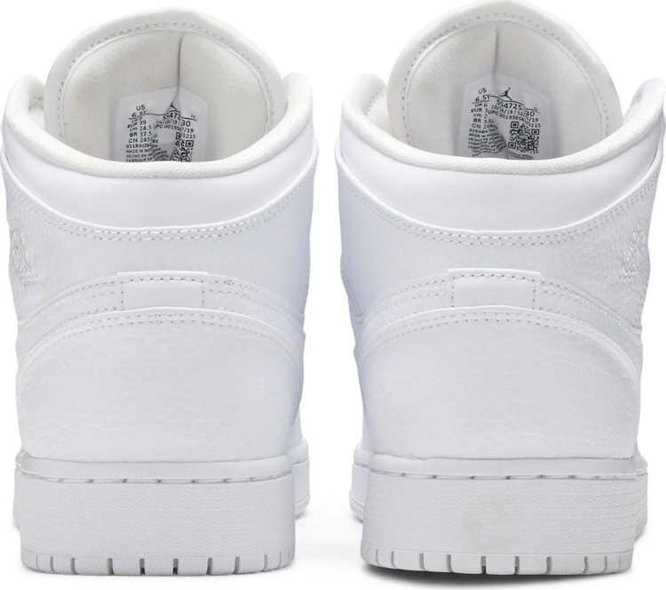 Кроссовки Air Jordan 1 Mid GS Triple, фактурный белый