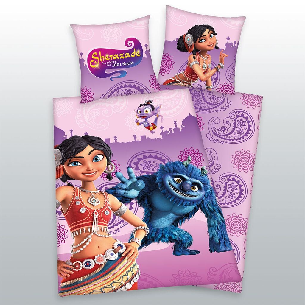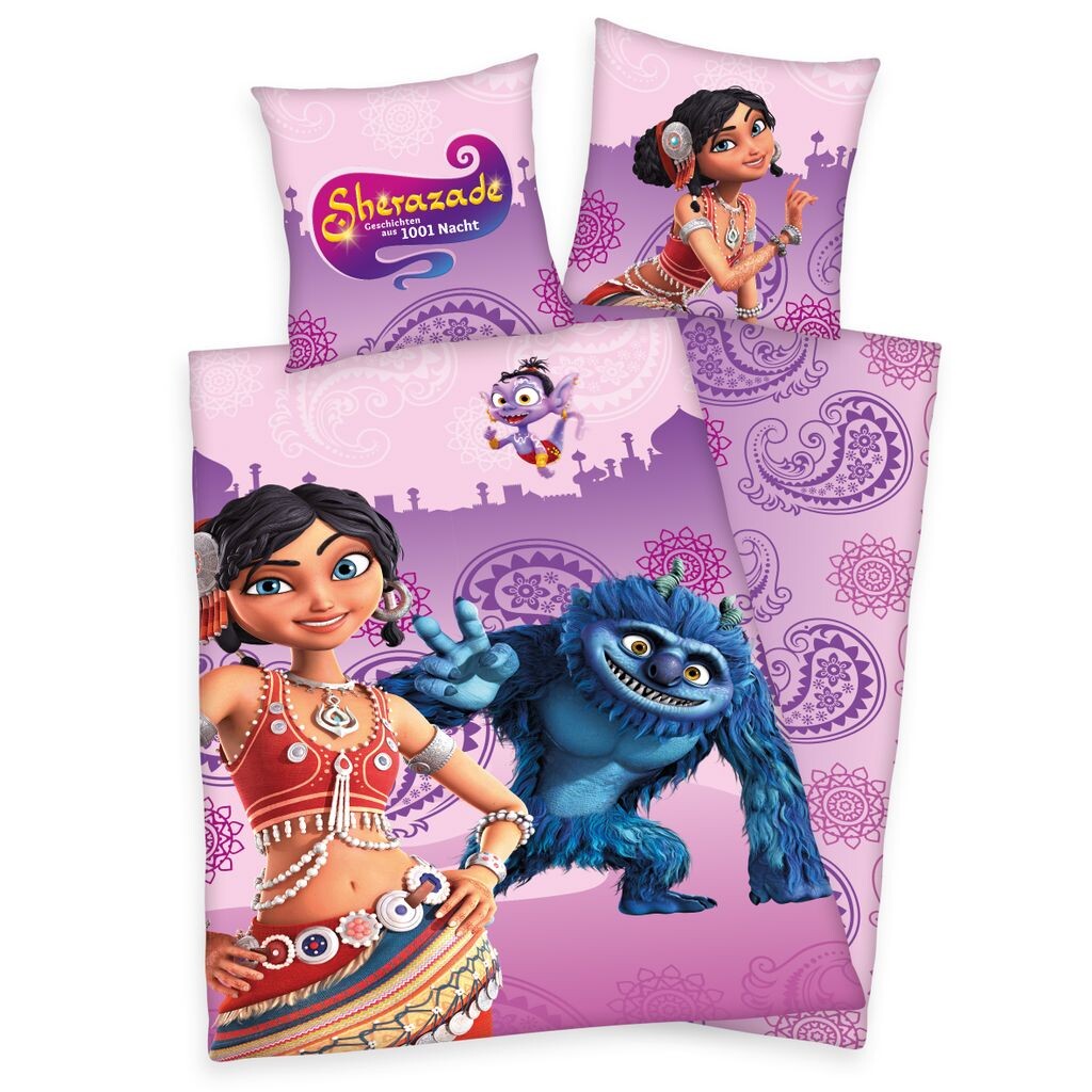 Высококачественное постельное белье по лицензии Sherazade. Состоит из пододеяльника на фирменной молнии размером 135х200см и двусторонней подушки на фирменной молнии размером 80х80см.
