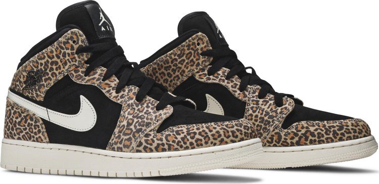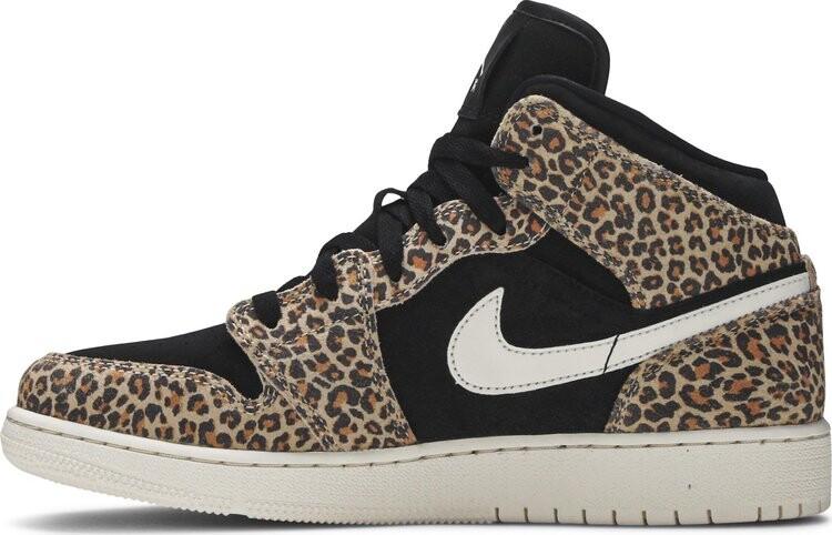Кроссовки Air Jordan 1 Mid SE GS Leopard, черный