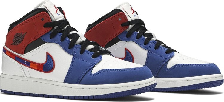 Кроссовки Air Jordan 1 MID SE GS Multicolored Swoosh, белый