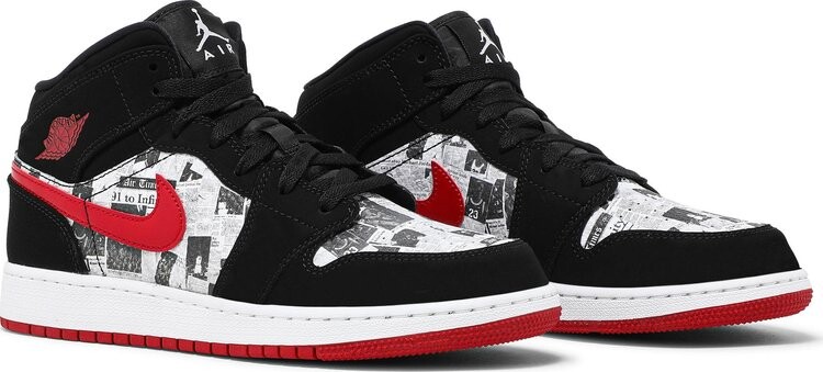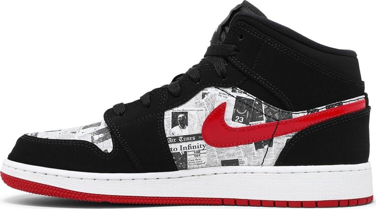 Кроссовки Air Jordan 1 Mid SE GS Newspaper Air Times, черный