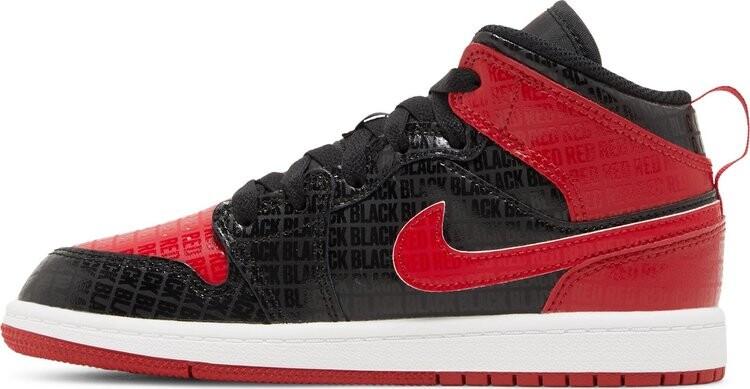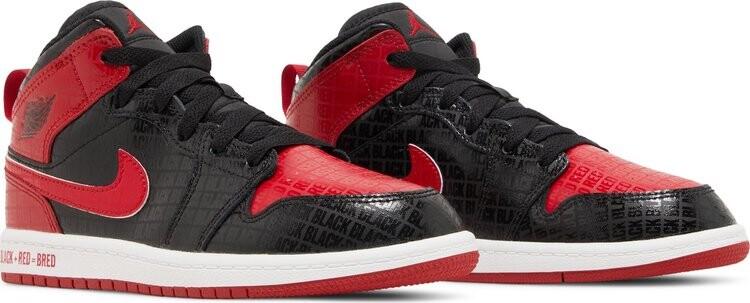 Кроссовки Air Jordan 1 Mid SS PS Black + Red = Bred, черный