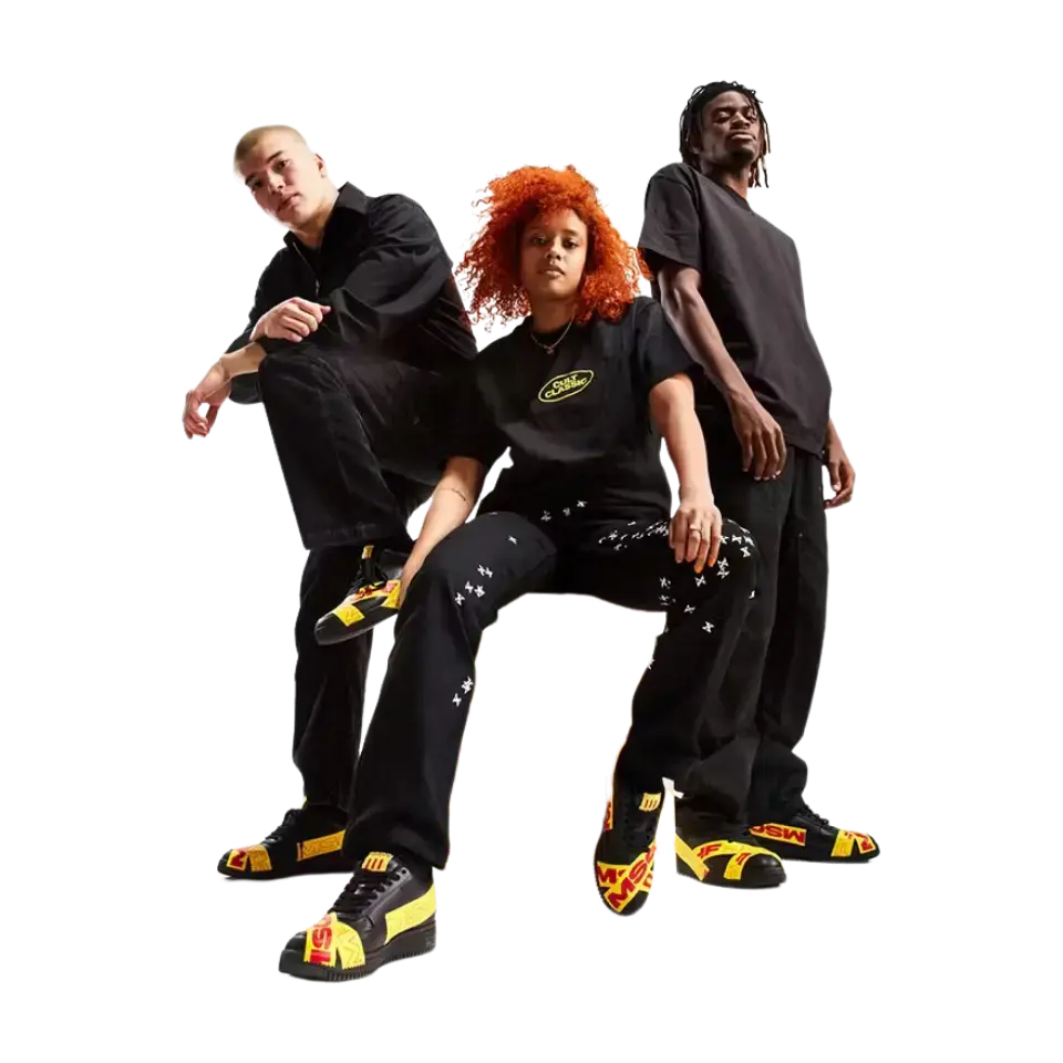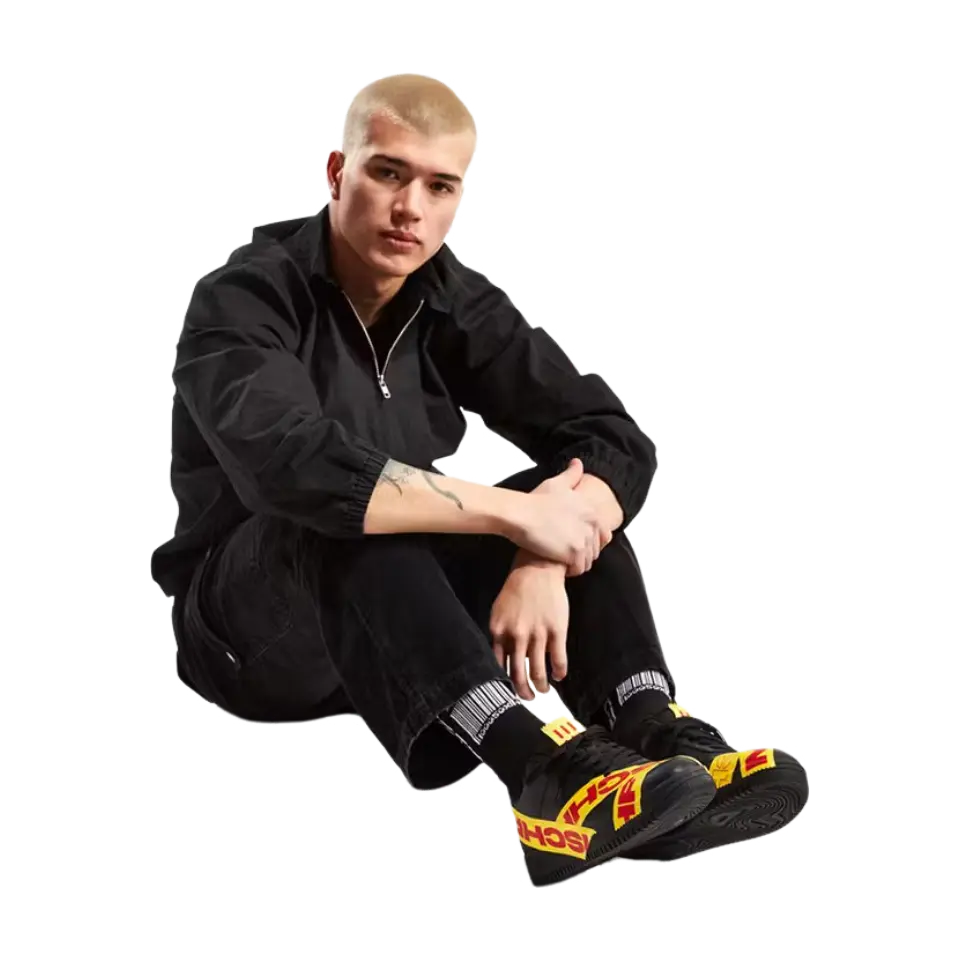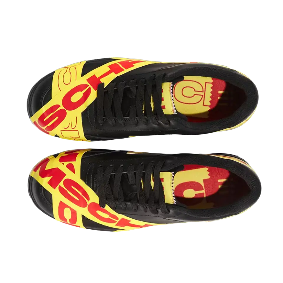 MSCHF TAP3 'Black' - это продолжение нашумевшей модели Air Max 97 «Satan Shoes» от бруклинского коллектива, коллаборации 2021 года с Lil Nas X, которая вызвала немало споров. В отличие от прошлых релизов лейбла, эта модель - оригинальное творение, подчеркнутое знакомой формой лоу-топа классического баскетбольного силуэта. Верхняя часть выполнена из черной кожи и украшена термосвариваемой лентой TPU ярко-желтого цвета. Красные полосы с брендингом MSCHF опоясывают носочную и пяточную части и переходят в черную резиновую подошву.