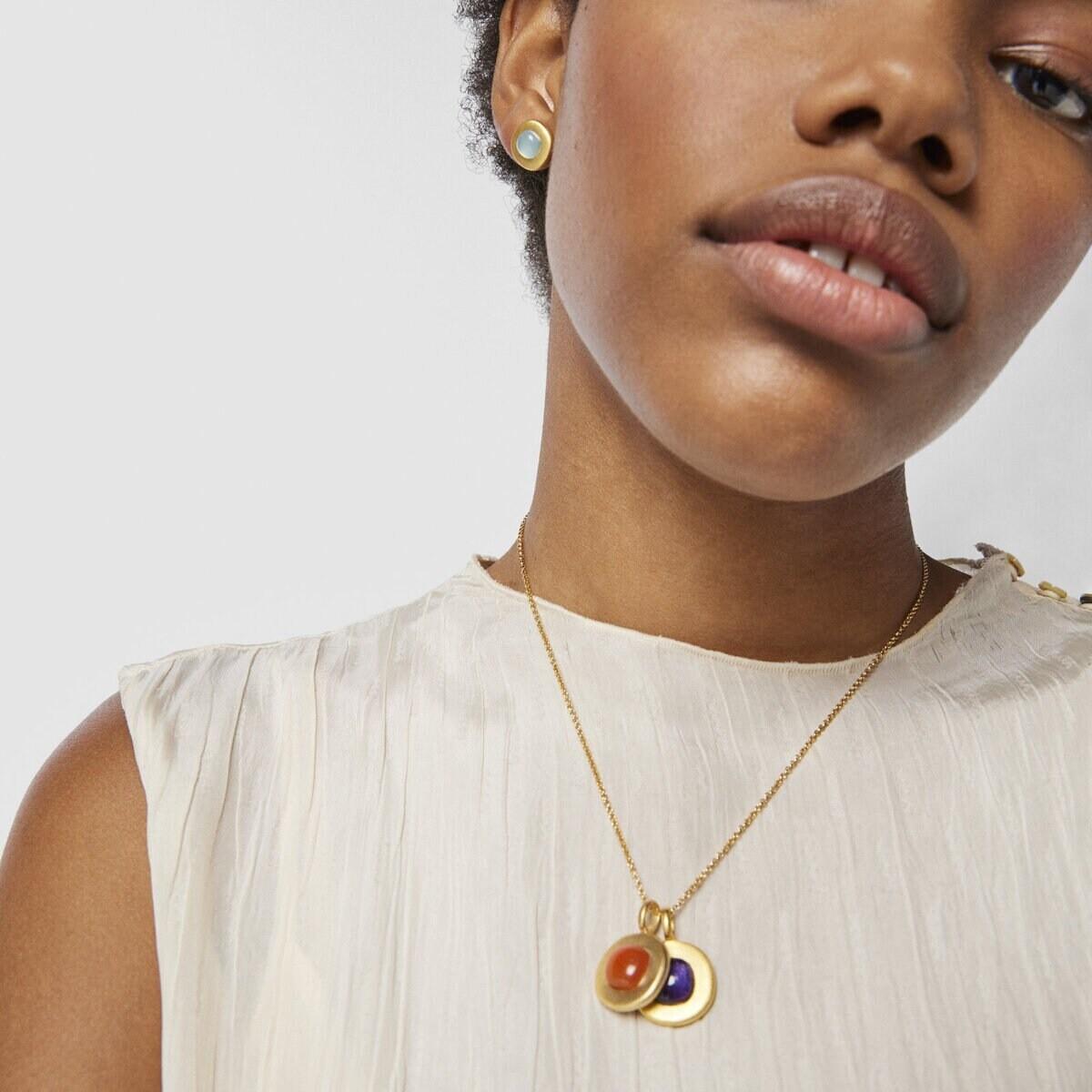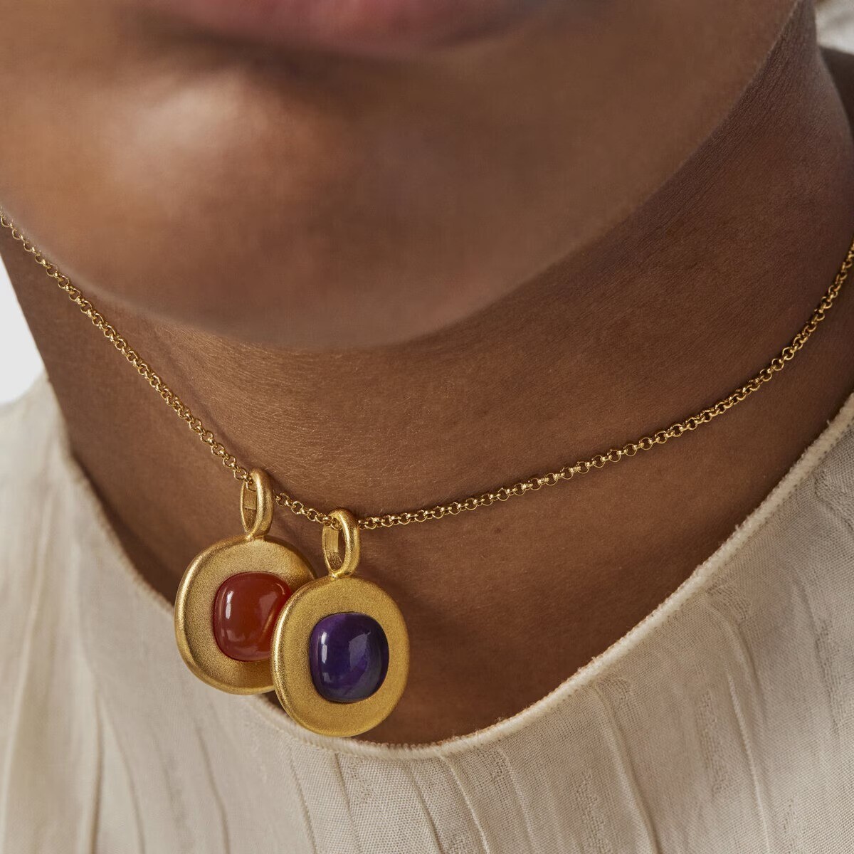 Кулон из вермеля с сердоликом из коллекции Nattfall наполнит ваш образ позитивной энергией. Цвет драгоценного камня контрастирует с вермелем украшая любой образ.