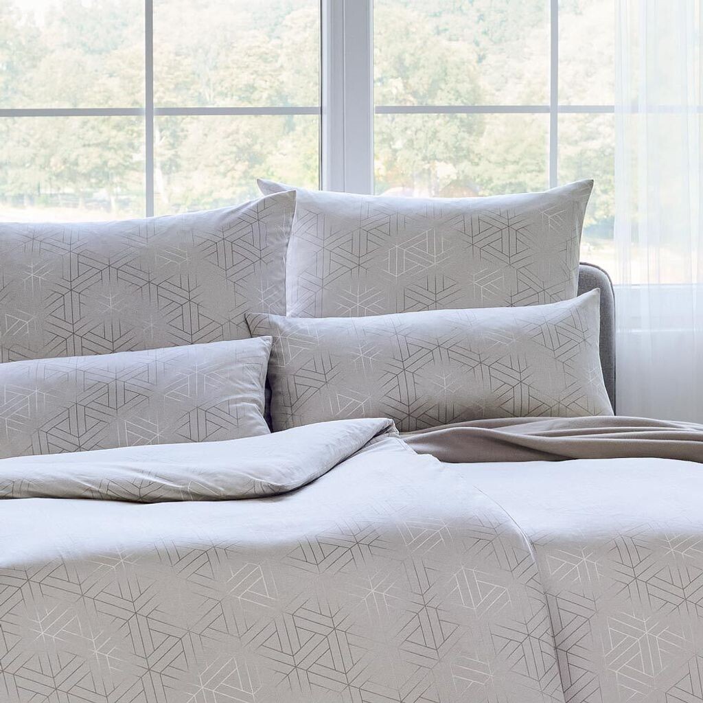 Легкий блеск, которым покрыты наволочки и пододеяльники постельного белья Pippa, заставит вашу спальню предстать в совершенно новом свете. В его основе тонкий геометрический узор, напоминающий элегантный стиль ар-деко начала 1920-х годов. Тем не менее, серый базовый цвет набора гарантирует, что у вас останется достаточно свободы для создания собственного уютного оазиса. Постельное белье изготовлено из негладкого трикотажа интерлок Мако из чистого хлопка и обеспечивает особые ощущения от сна во всех отношениях. Мягкий Плотно связанная и приятная для кожи ткань обеспечивает кондиционирование воздуха, регулирующее температуру, и обеспечивает абсолютное благополучие круглый год. За этим постельным бельем очень легко ухаживать, его можно сушить в стиральной машине, его не нужно гладить, оно сохраняет форму даже после многочисленных стирок. Постельное белье из интерлока Mako от Estella – идеальное четырехсезонное постельное белье!