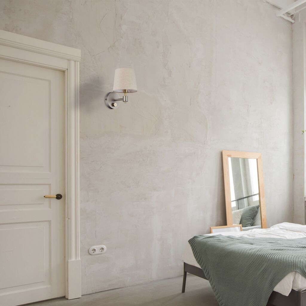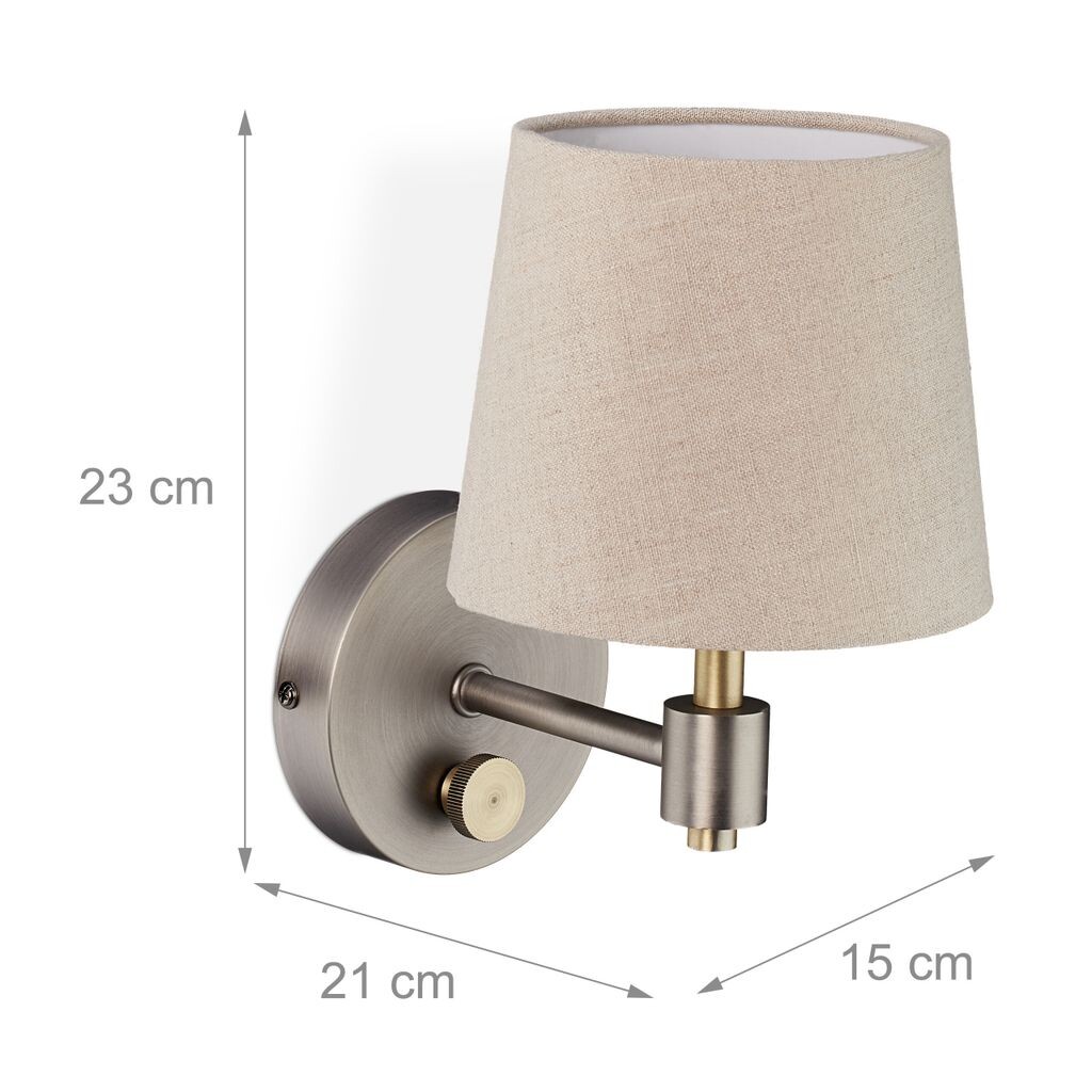 Расставьте стильные акценты в своем доме с помощью этого настенного светильника. Шикарный дизайн придаст вашей прихожей, гостиной или спальне декоративный винтажный вид. Железное основание из серебра и латуни в сочетании с бежевым абажуром создает захватывающий ретро-стиль. Благодаря поворотному переключателю вы можете самостоятельно определить яркость настенного светильника. Обеспечьте хорошо освещенную жилую зону или создайте уютную атмосферу во время вечернего просмотра.