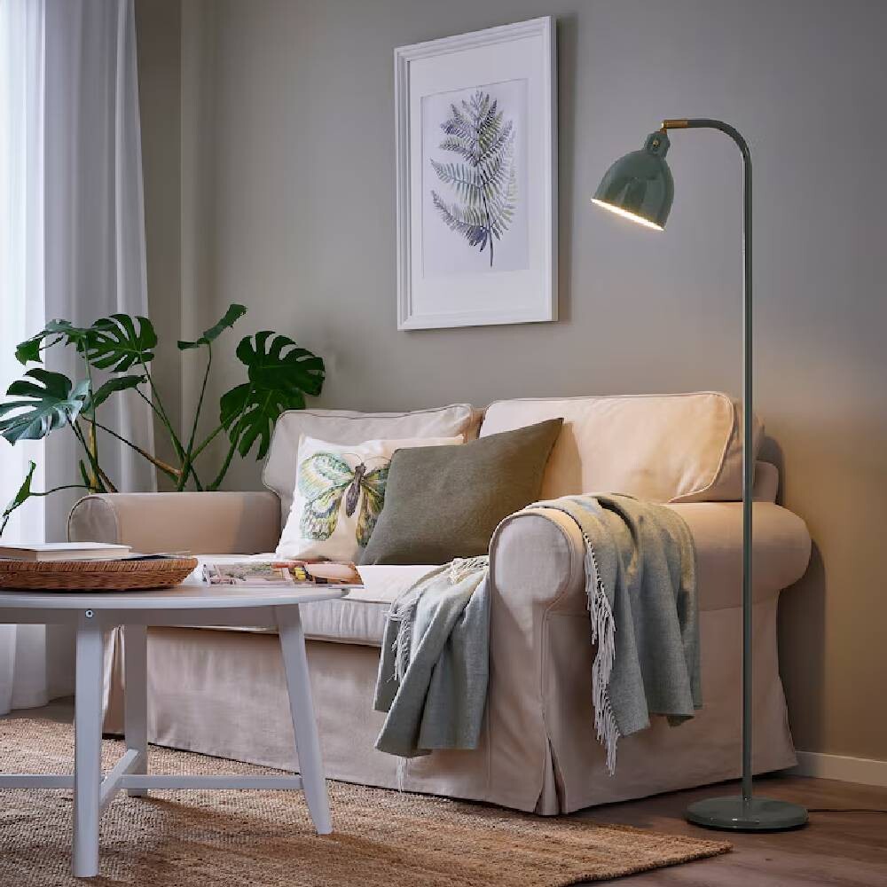 Глянцевая поверхность и детали цвета латуни этого торшера/лампы для чтения вдохновлены старыми эмалированными промышленными лампами. Лампа одновременно декоративна и практична и имеет двустороннюю головку.