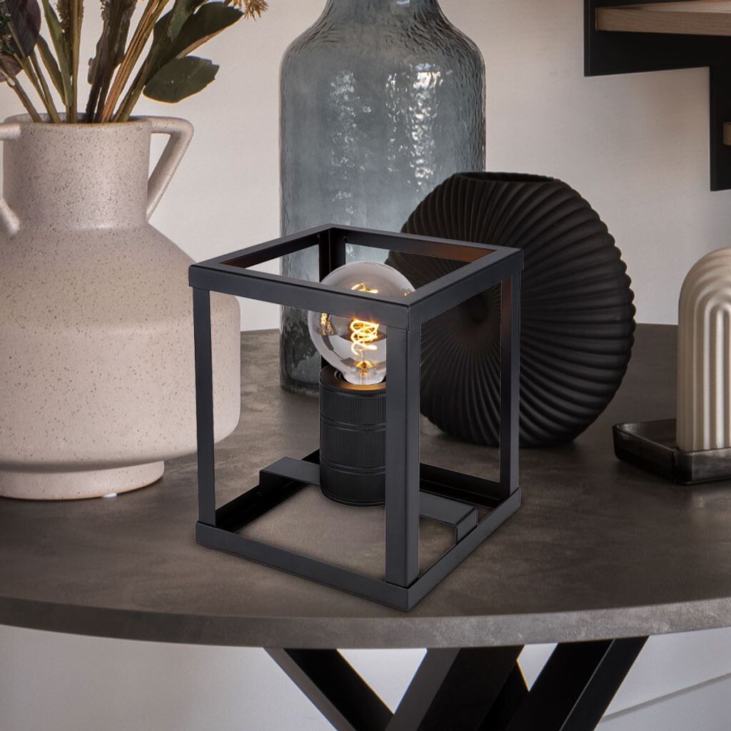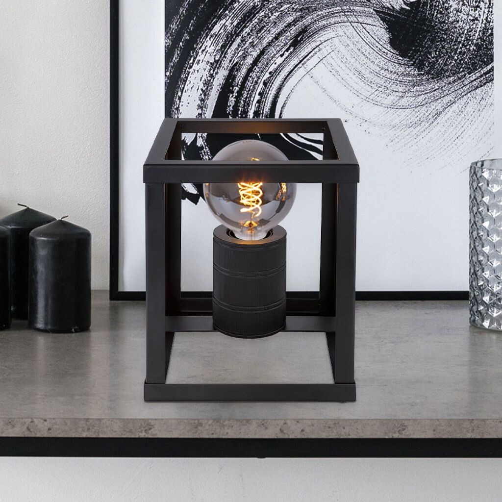 Описание Эта настольная лампа впечатляет своим простым дизайном, выполненным из черного матового металла. Он состоит из металлического каркаса прямоугольной формы (17х17х20 см), в который входит розетка Е27. Вы можете оснастить их подходящей лампой по вашему выбору, которая даст вам возможность определить цвет и яркость света в соответствии с вашими пожеланиями. Кроме того, кабель настольной лампы оснащен выключателем, с помощью которого можно легко включать и выключать лампу. Лампа не входит в комплект. Подробности о лампе - Тип лампы: Настольная лампа