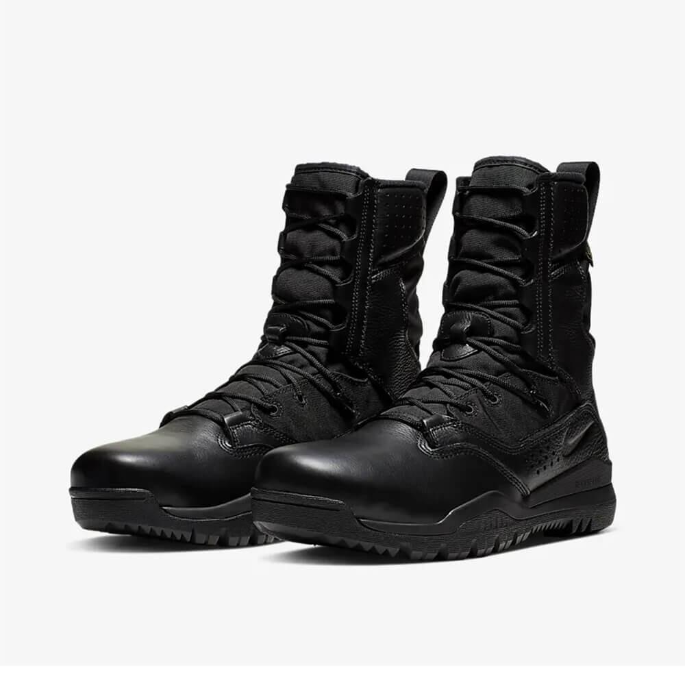 Nike SFB Field 2 8" GORE-TEX, изготовленные из водонепроницаемой ткани и прочной кожи, представляют собой легкие, но высокоэффективные ботинки, предназначенные для выдерживания более тяжелых нагрузок в любых условиях. Подошва с агрессивным рисунком протектора обеспечивает исключительное сцепление в сложных условиях местности, а внутренний каменный щит помогает предотвратить проколы.