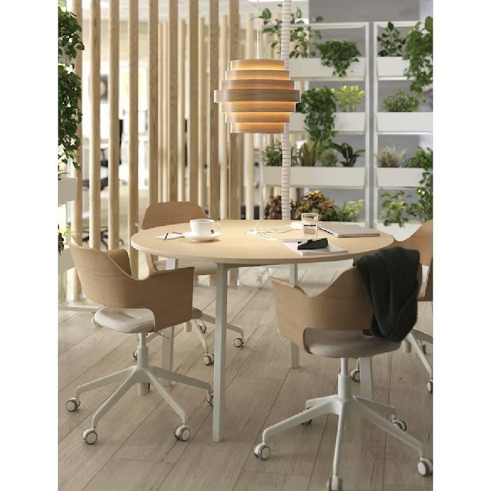 Неослепляющий потолочный светильник DYKARKLOCKA имеет кольцевой абажур из шпона и впервые появился как TIVOLI в каталоге 1964 года. Это пример вневременной продукции, получившей новую жизнь в коллекции Nyfäskarskad.