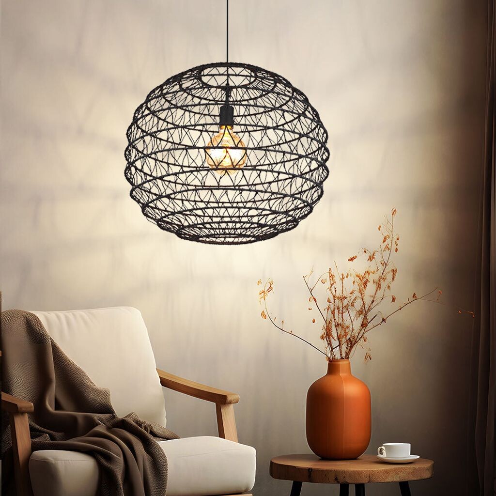Описание Этот элегантный подвесной светильник впечатляет своим великолепным дизайном и станет центром внимания любой вашей комнаты. Черный кабель длиной 1,2 м проходит от круглого потолочного крепления к розетке E27, закрытой складным бумажным козырьком (Ø 59 см). Розетка E27 дает вам возможность самостоятельно определять цвет и яркость света до максимальной мощности 15 Вт.  Лампа не входит в комплект поставки. Подробности о светильнике  - Тип лампы: подвесной светильник