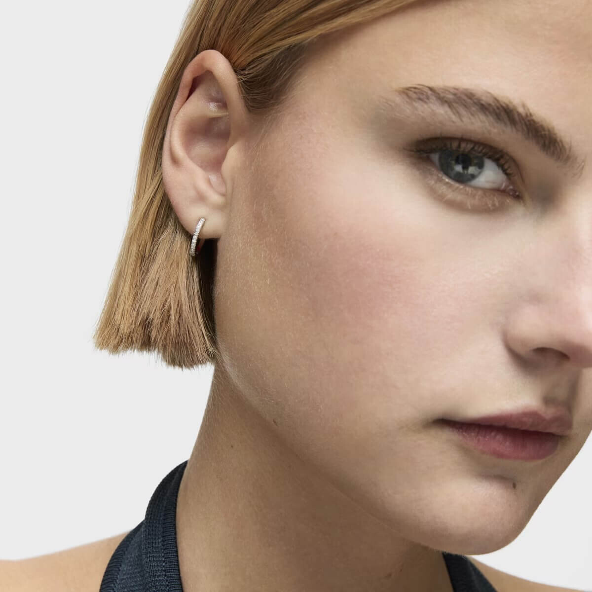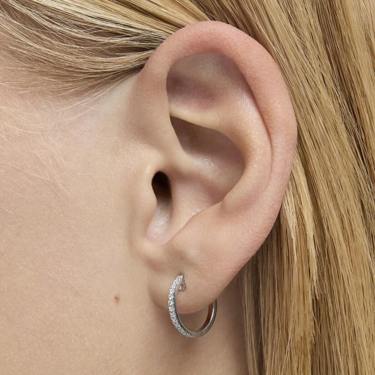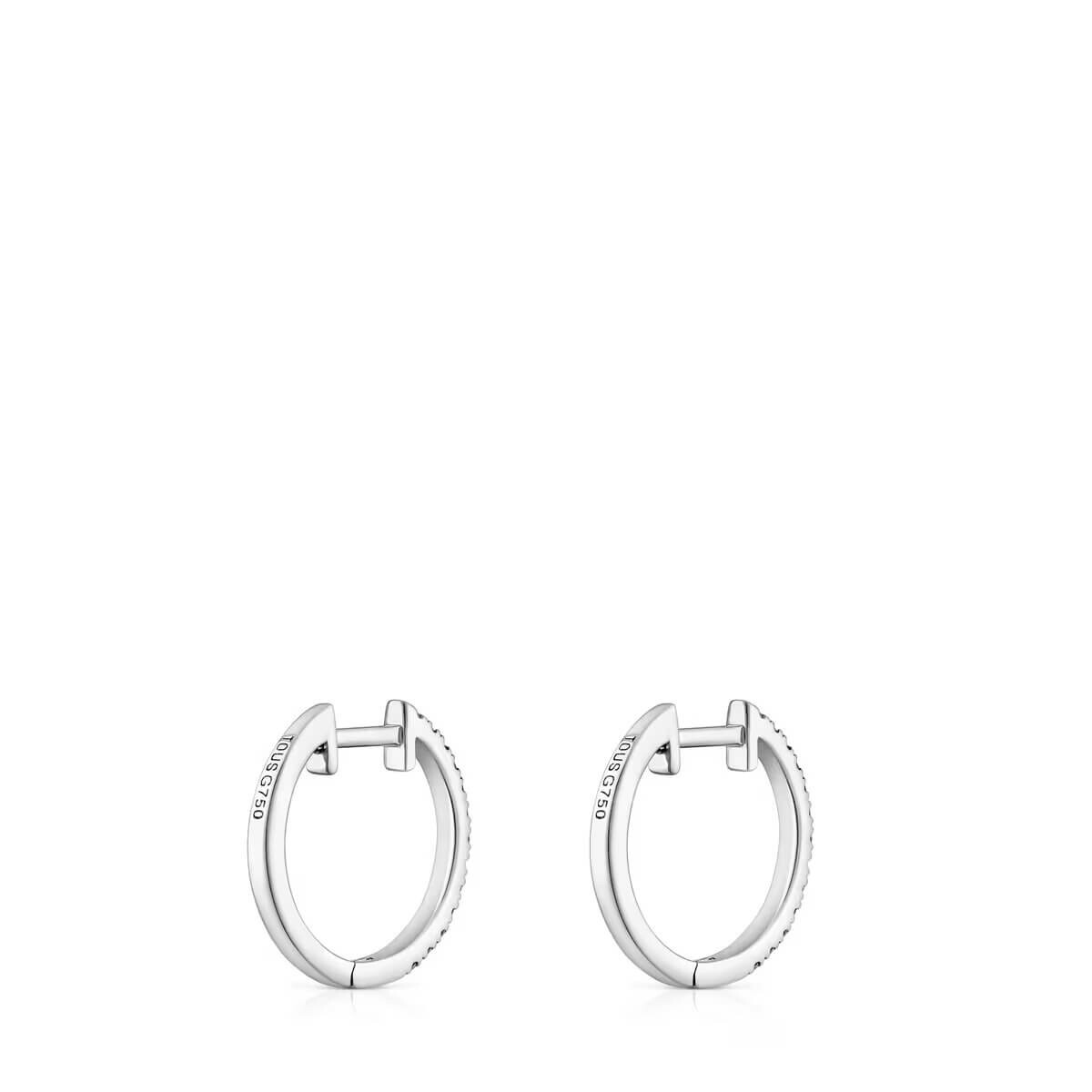 Классические серьги-кольца из 18-каратного белого золота с бриллиантами бриллиантовой огранки 0,13 карата. Качество бриллиантов: GH/SI. Размер серьги: 11 мм.