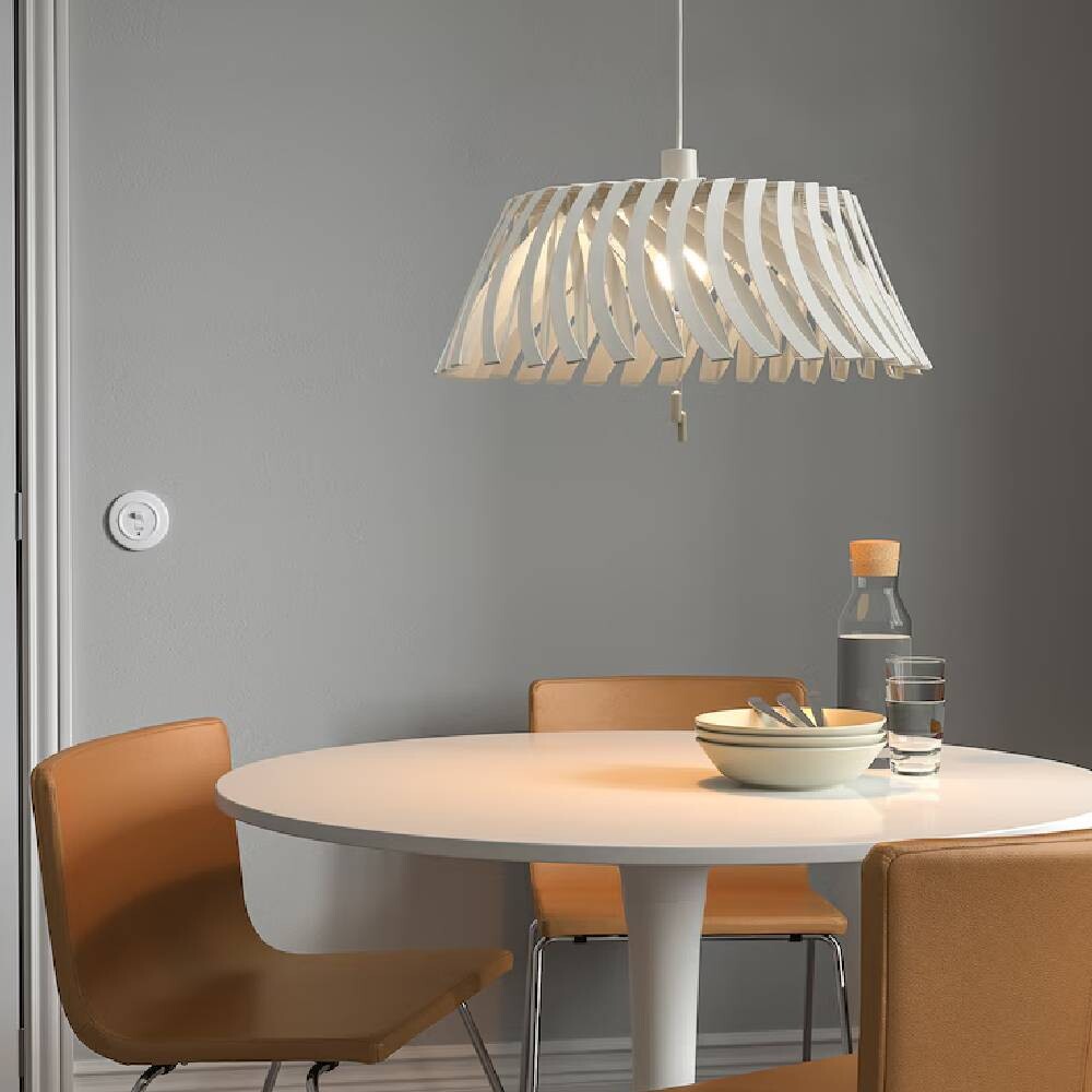 Форму абажура потолочного светильника YTLÄGE можно регулировать по мере необходимости. В закрытом цилиндре абажур создает в комнате уютный свет, а в открытом виде напоминает цветок и светится ярче. Интересный способ изменить атмосферу комнаты.