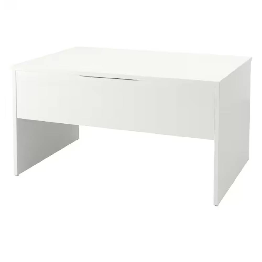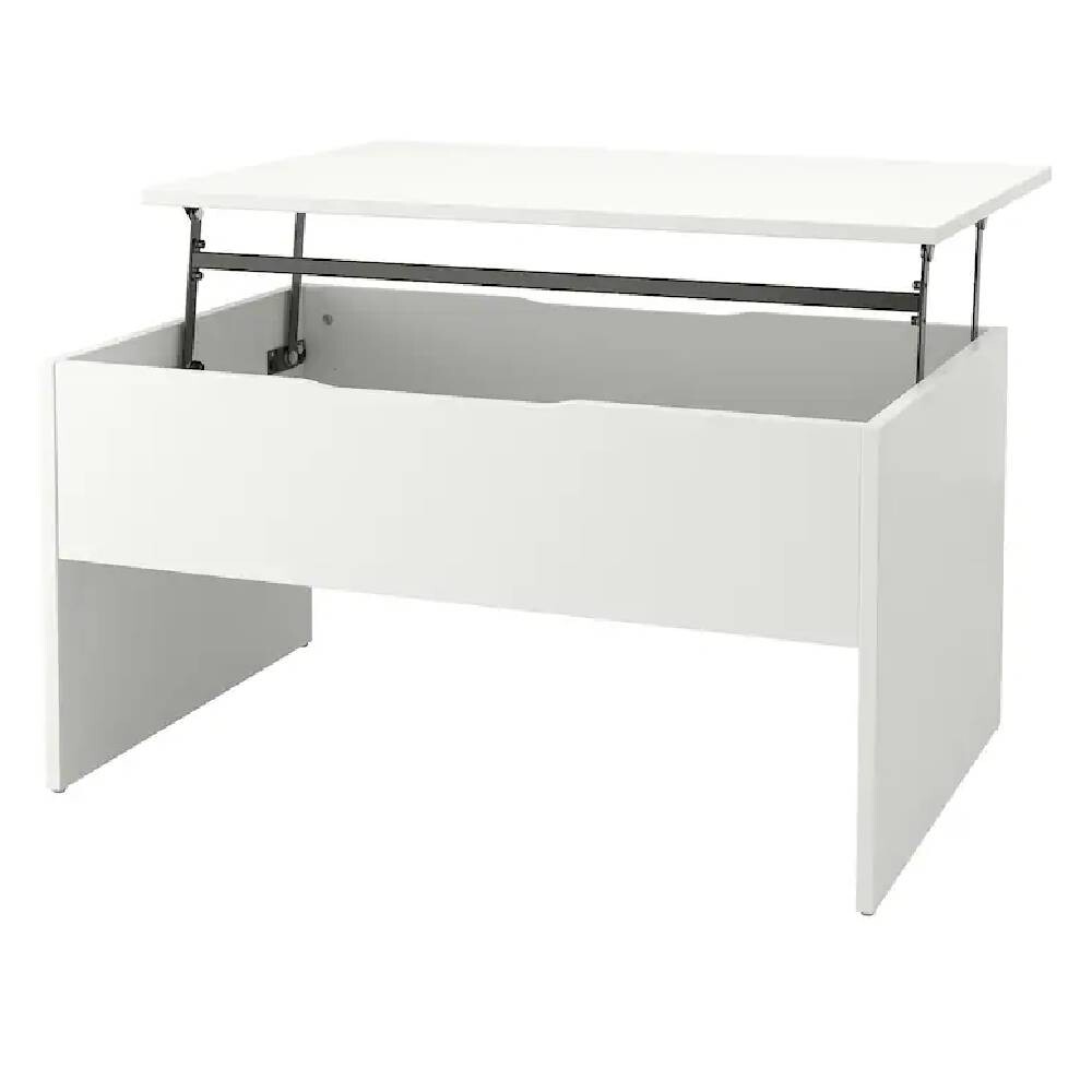 Журнальный столик ÖSTAVALL, который можно регулировать по высоте, привносит в гостиную больше практичности. Поднимайте и опускайте столешницу по мере необходимости и сохраняйте порядок в скрытом пространстве для хранения.
