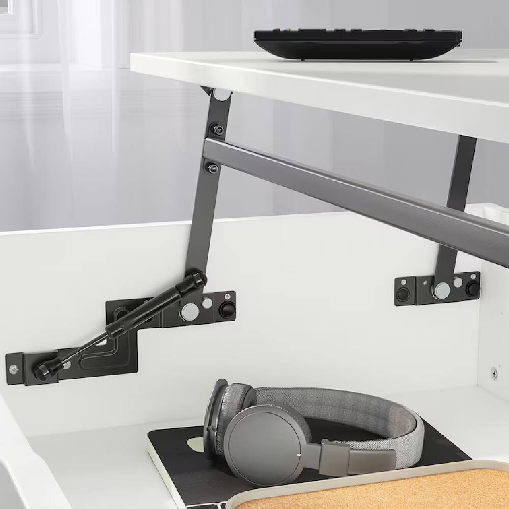 Подъемный механизм имеет блокировку, предотвращающую неожиданное закрывание столешницы. Газовая пружина стола обеспечивает плавное и безопасное закрывание столешницы.