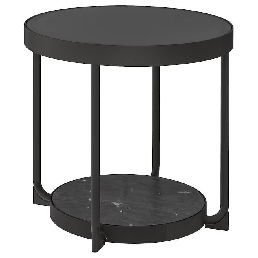 Хорошо продуманный дизайн с различными материалами и отделкой, со столешницей из дымчатого стекла, трубчатыми стальными ножками с порошковым покрытием и основанием с эффектом мрамора придают столу индивидуальный характер. Круглый журнальный столик FRÖTORP имеет простой и прочный вид, а его материалы долговечны и неподвластны времени