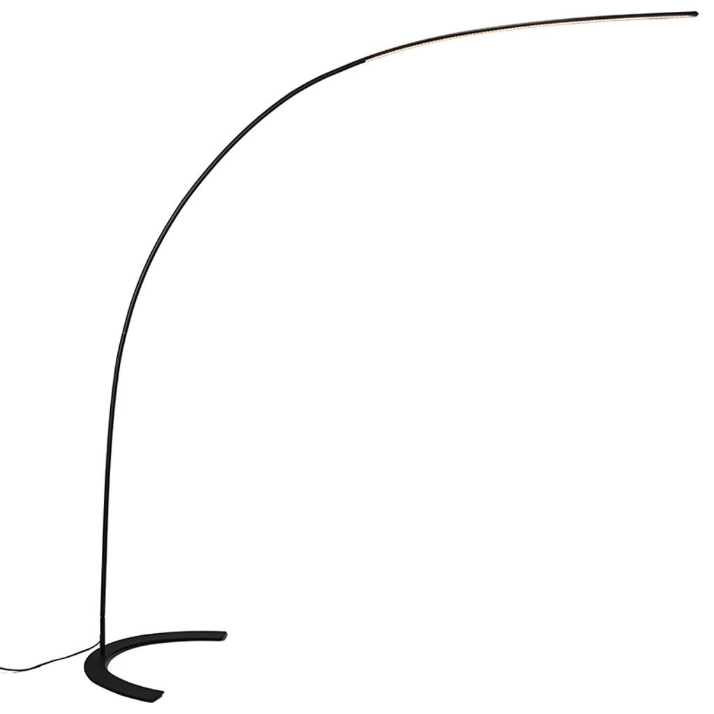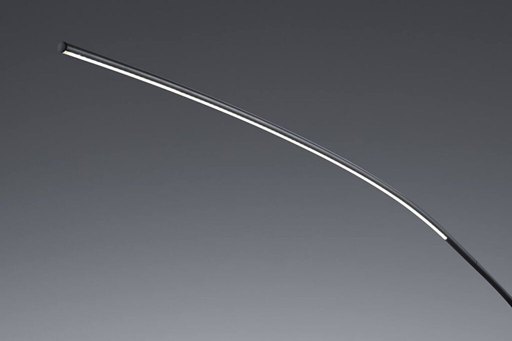 Изогнутый стояк впечатляет своей чрезвычайно плоской конструкцией. Только благодаря этому такая светоемкая лампа может оставаться настолько сдержанной по внешнему виду, что ее можно разместить практически в любом современном стиле интерьера.