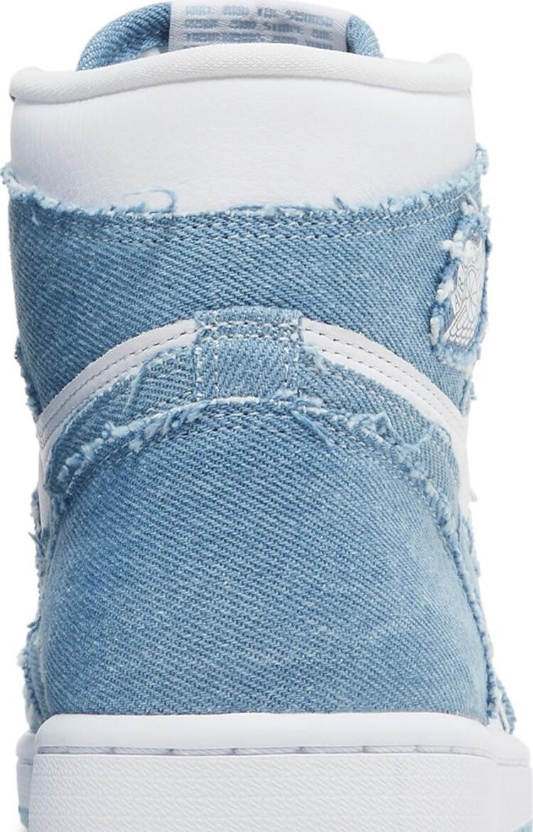 Женские кроссовки Air Jordan 1 Retro High OG «Denim» классического силуэта выполнены из потертого денима, создавая уникальный образ. Верхняя часть из белой кожи украшена джинсовыми накладками, в том числе язычком и логотипом Swoosh. Логотип Wings выглядит как пришитая нашивка на боковой стороне, а у основания шнурков находится крупный кружевной бриллиант металлического золота с логотипом Jumpman и надписью Jordan. Традиционная чашечная подошва с инкапсулированным воздухом опирается на резиновую подметку.