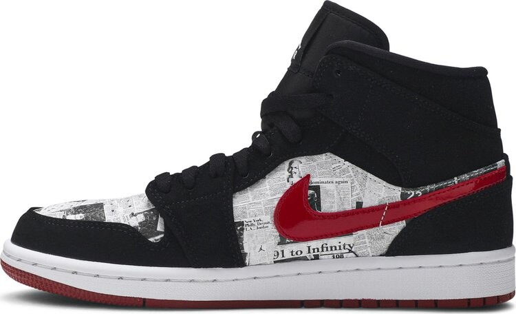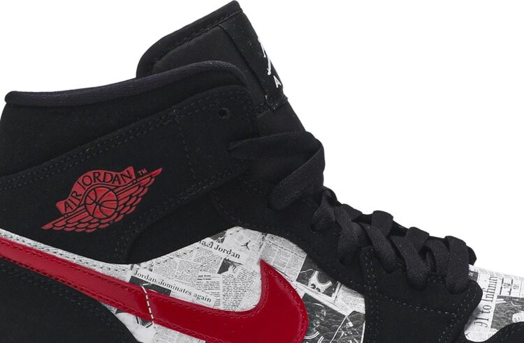 Кроссовки Air Jordan 1 Mid SE Newspaper Air Times, черный