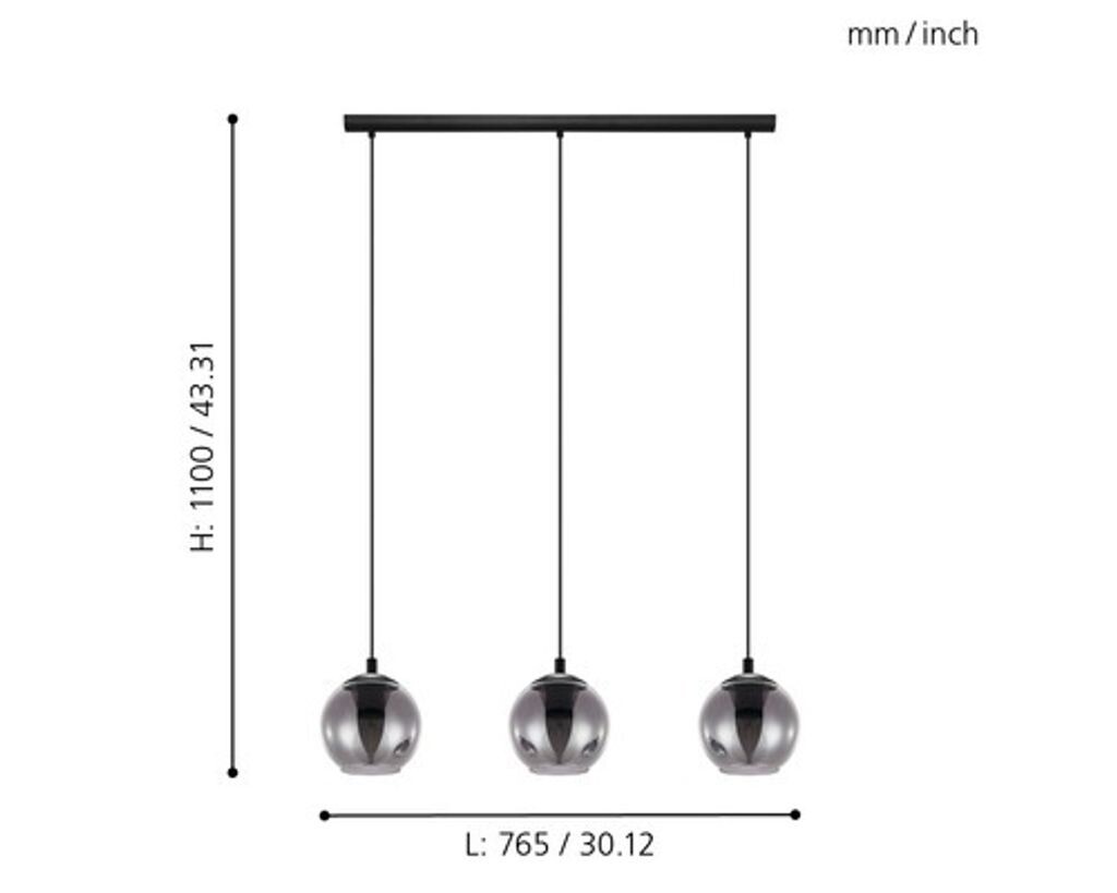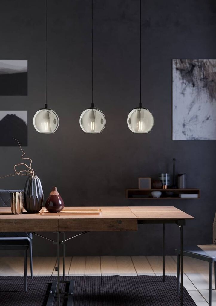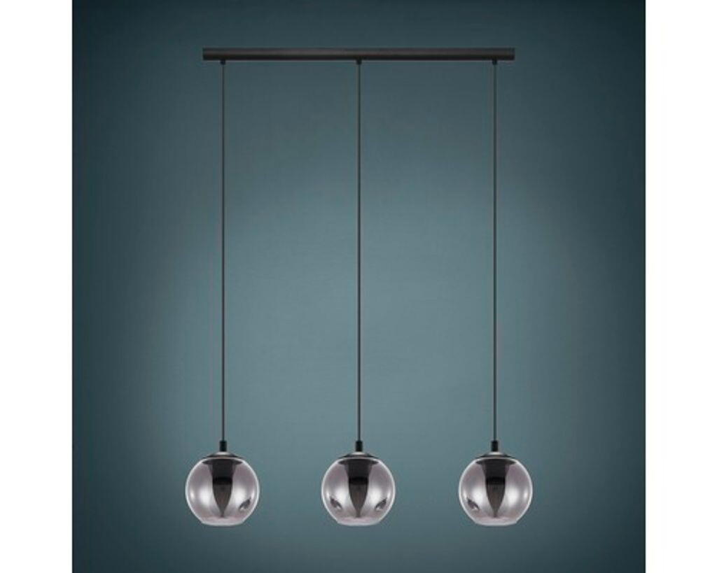 Подвесной светильник ARISCANI состоит из трех круглых плафонов из черного прозрачного дымчатого стекла, свисающих с длинного черного металлического плафона. . Эта люстра идеально вписывается в современный минималистский декор и обеспечивает неповторимое освещение в любой обстановке, будь то гостиная или столовая над обеденным столом. Лампочки в комплект не входят. Для светильника подойдет любая лампочка с цоколем Е27.