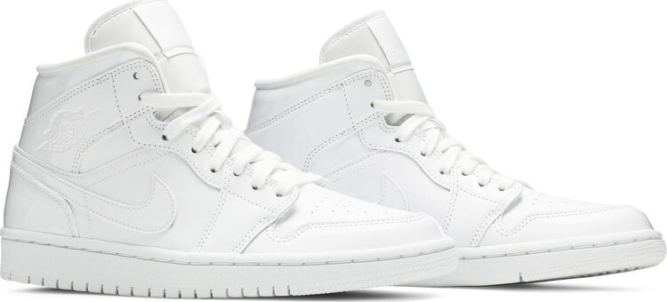 Кроссовки Wmns Air Jordan 1 Mid Patent Triple White, белый