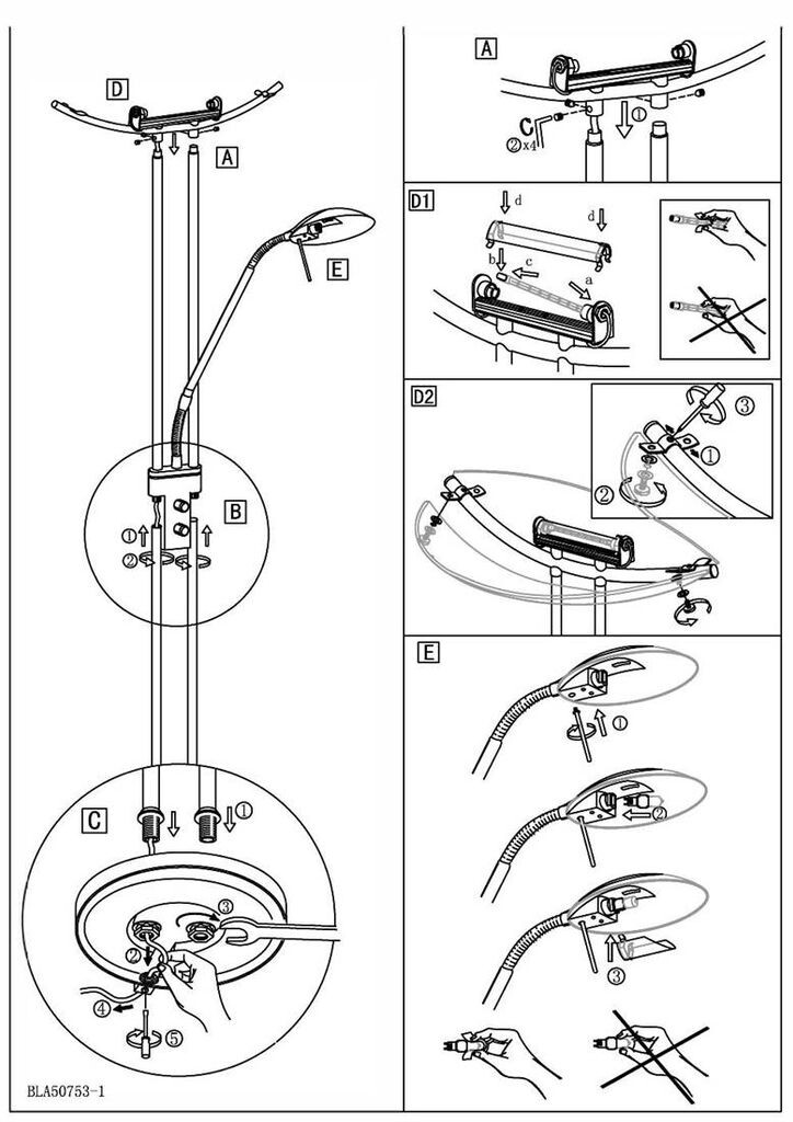Установка проста: необходимо соединить отдельные компоненты, прикрутить абажуры и затем вставить лампочки.