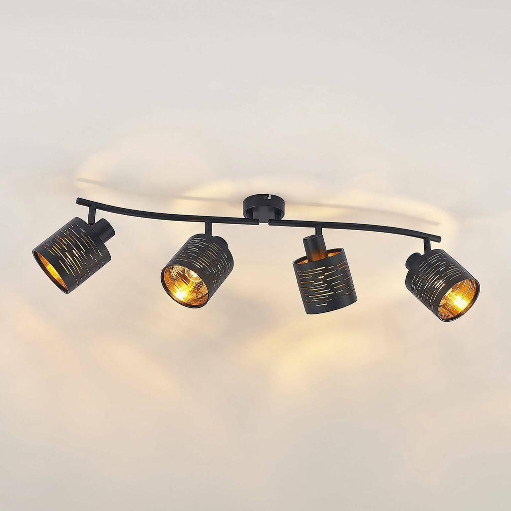 Потолочный точечный светильник Iolyn с четырьмя лампочками надежно обеспечивает хорошее базовое освещение в современных жилых помещениях. Четыре точечных светильника оснащены плафонами черного и золотого цветов, которые также привлекают внимание в комнате.
