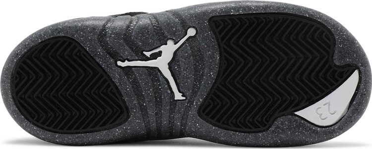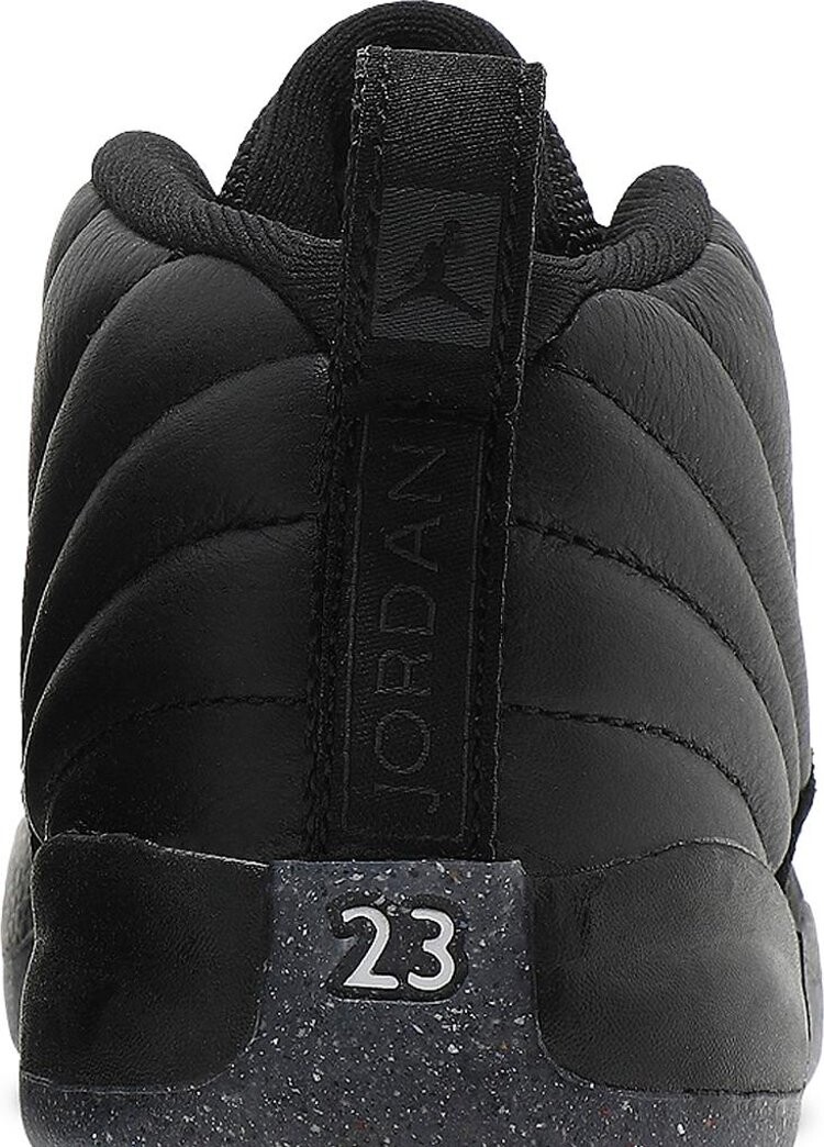 Jordan 12 Utility TD Grind, предлагаемые в уменьшенном размере для нового поколения поклонников MJ, сочетают в себе сдержанную цветовую гамму классического силуэта. Прошитый верх выполнен из черной мятой кожи с тональными накладками из гладкого нубука, заменяющего типичную для модели 12 кожу с текстурой ящерицы. На язычке из баллистической сетки красуется малиновый логотип Jumpman контрастного цвета. Кроссовки установлены на мягкой межподошве из пеноматериала, поддерживаемой под ногами пятнистой резиновой подошвой, в состав которой на 3% входит Nike Grind — переработанные материалы, полученные из отходов производства и обуви с истекшим сроком эксплуатации.