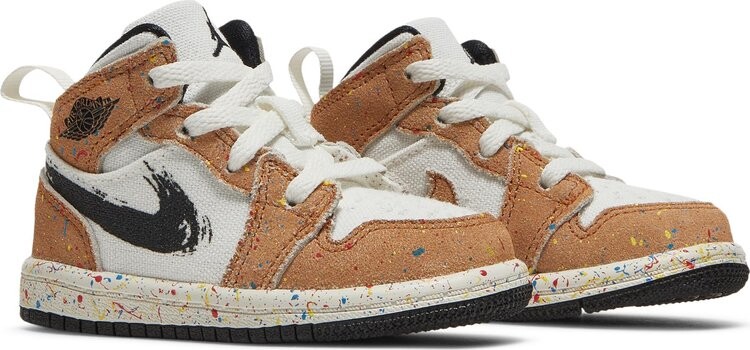 Кроссовки Air Jordan 1 Mid SE TD Brushstroke Paint Splatter, белый