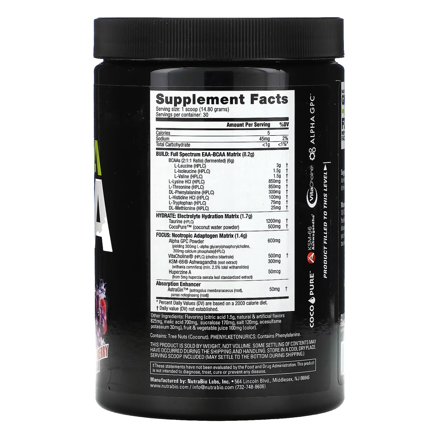 Добавка NutraBio Labs Alpha EAA, виноград / ягоды, 444 г 5 983₽