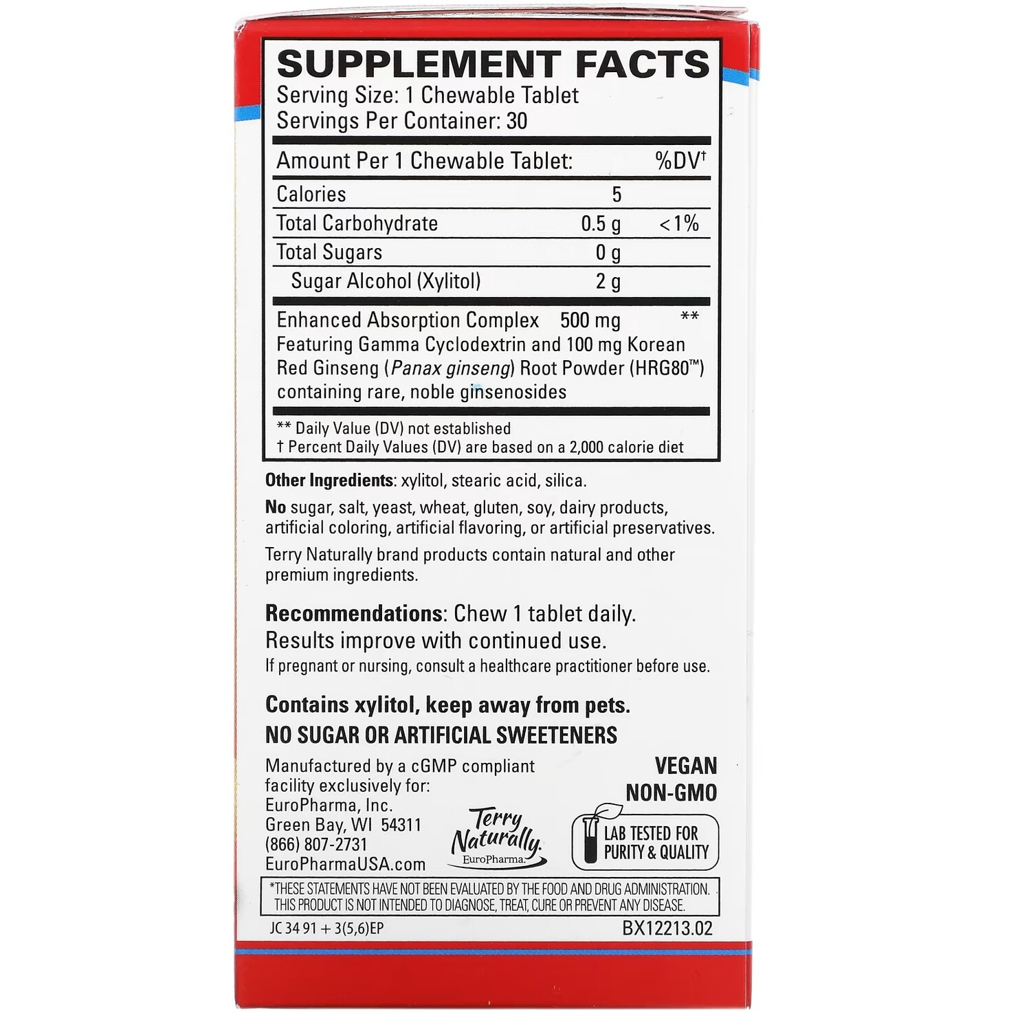 Добавка Terry Naturally HRG80 Red Ginseng Energy, 30 жевательных таблеток 3 891₽