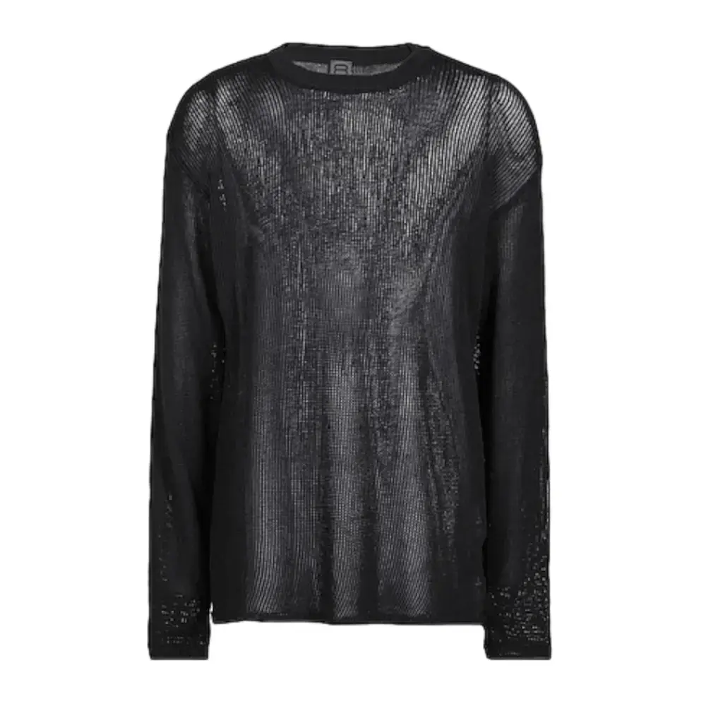 Трикотажный свитер без аппликаций, одноцветное изделие, круглый вырез горловины, длинные рукава.