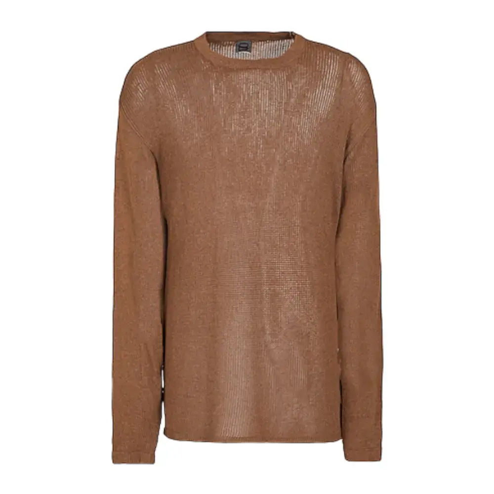 Трикотажный свитер без аппликаций, одноцветное изделие, круглый вырез горловины, длинные рукава.