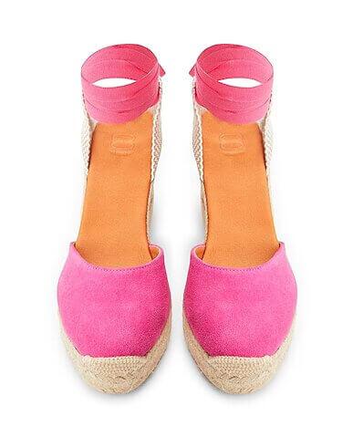 Двухцветные босоножки на танкетке с эффектом замши.