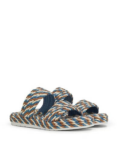 Разноцветные сандалии из плотной ткани.