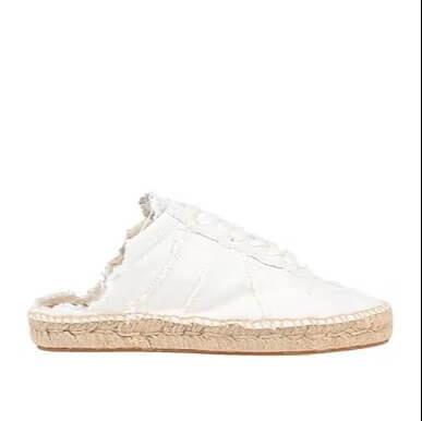 Открытые эспадрильи из однотонной ткани, со шнуровкой, на резиновой подошве без каблука. Логотип бренда на ремешке.