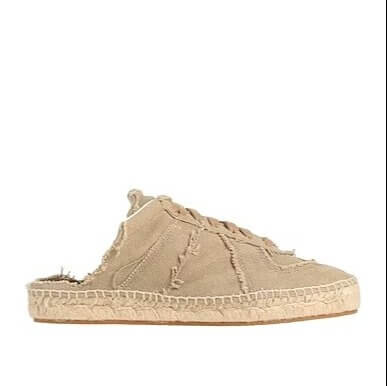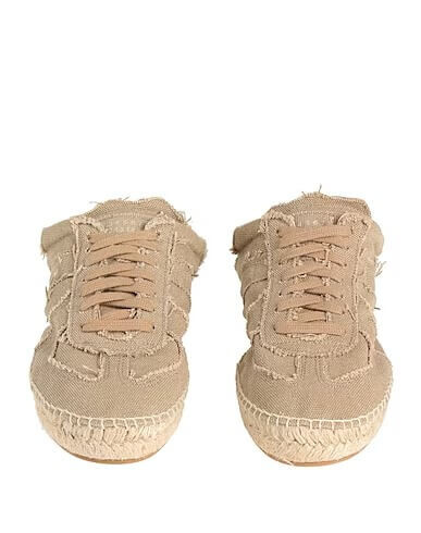 Открытые эспадрильи из однотонной ткани, со шнуровкой, на резиновой подошве без каблука. Логотип бренда на ремешке.