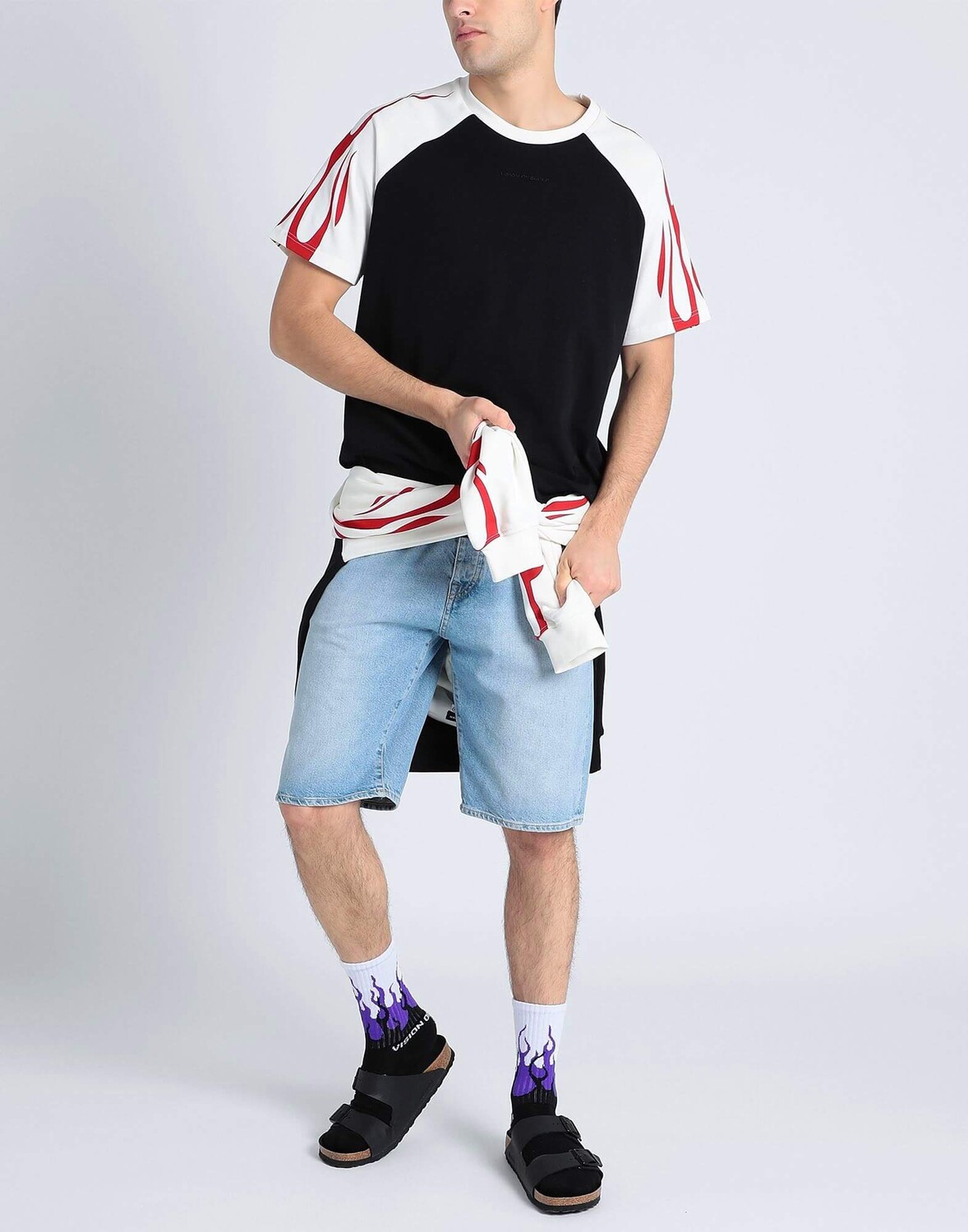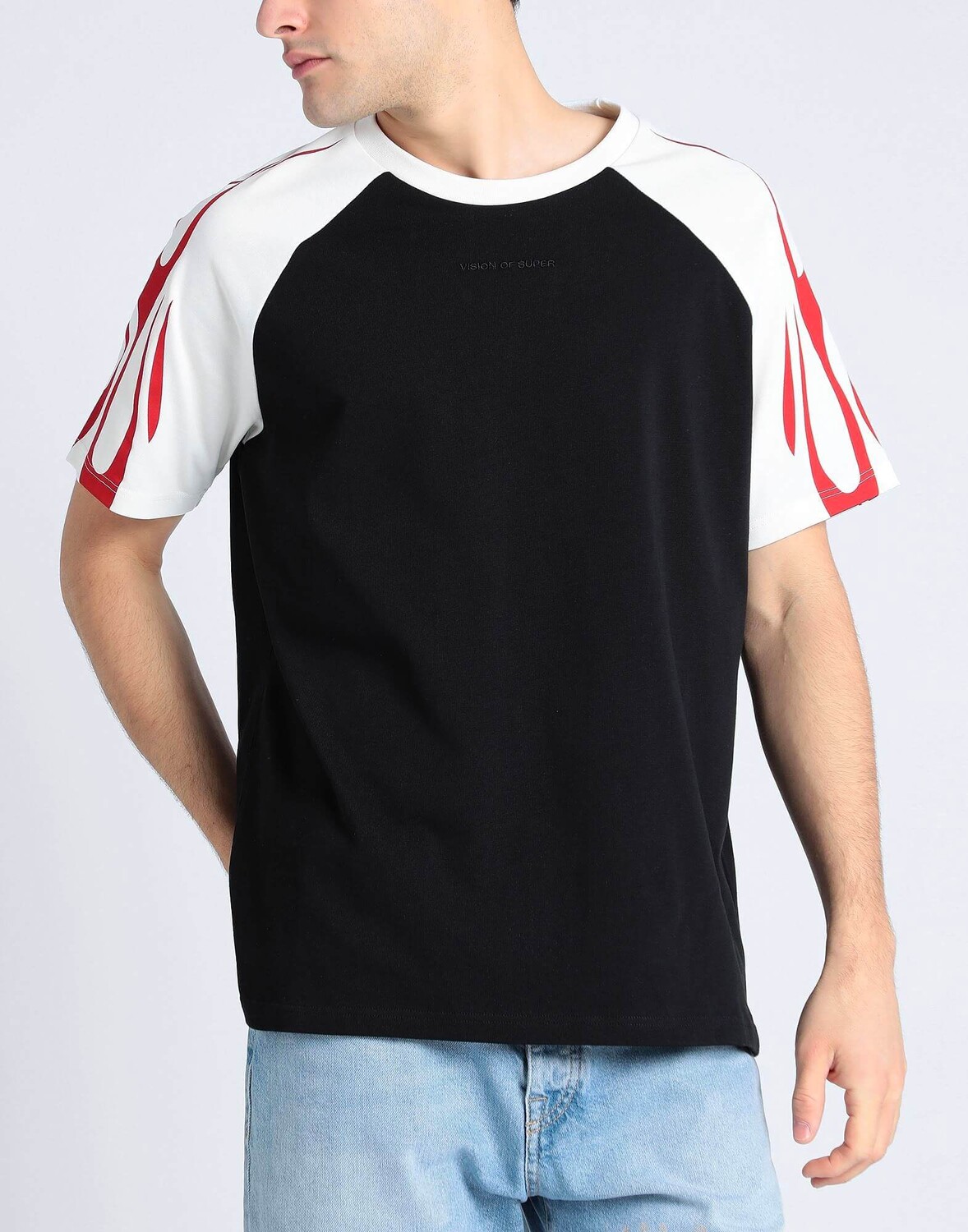 Джерси, принт, логотип бренда, двухцветное изделие, круглый вырез горловины, короткие рукава, рукава реглан.