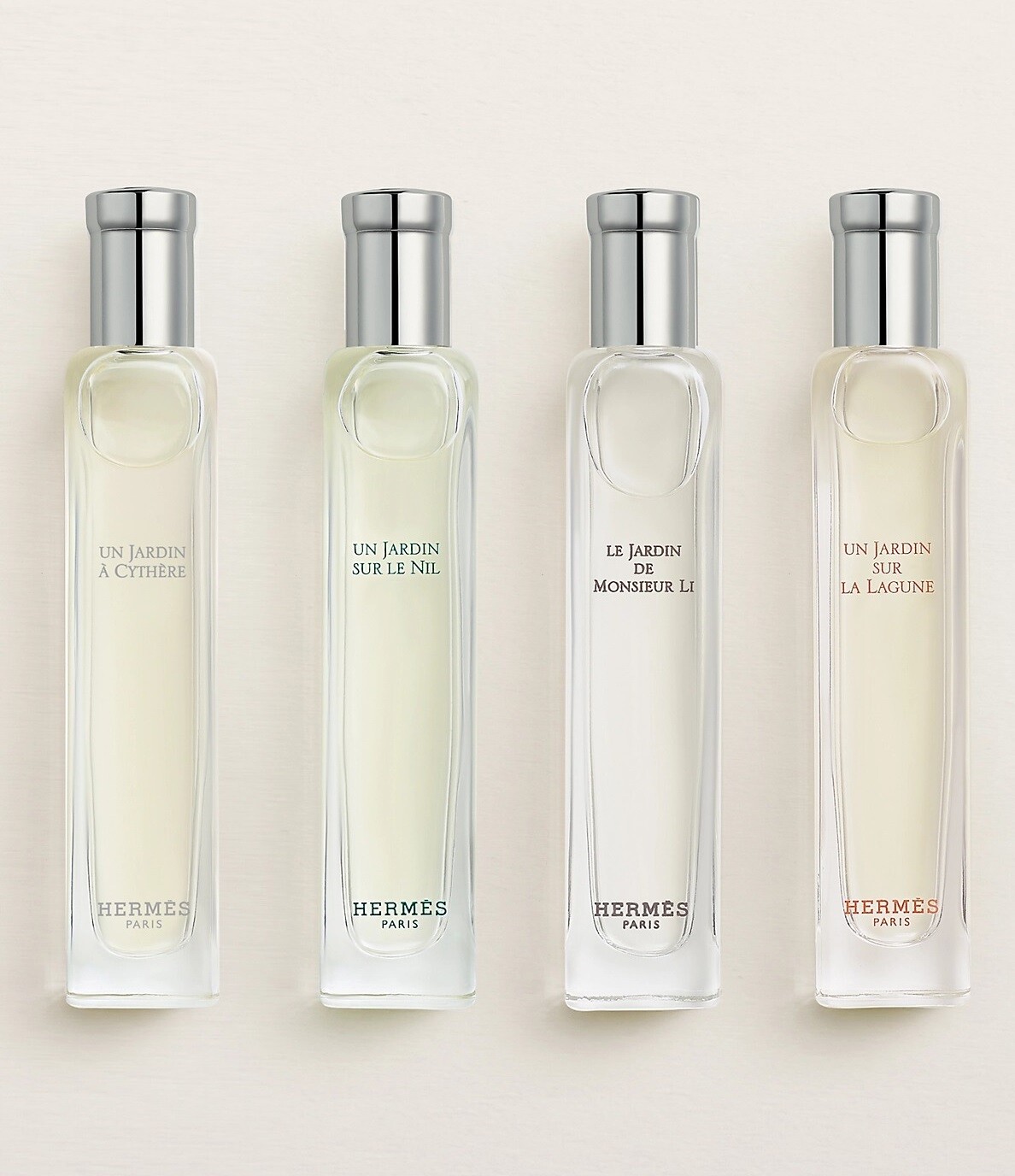 Откройте для себя четыре знаковых аромата Hermès Parfums-Jardins. Четыре флакона объемом 15 мл, помещенные в оранжевую коробку, приглашают вас совершить ольфактивное путешествие. Коллекция Parfums-Jardins объединяет душу места, вдохновение парфюмера и ежегодную тему, выбранную Hermès. Ароматическое путешествие для каждого момента, удовлетворяющее любое желание свежести, мечтательности или побега.